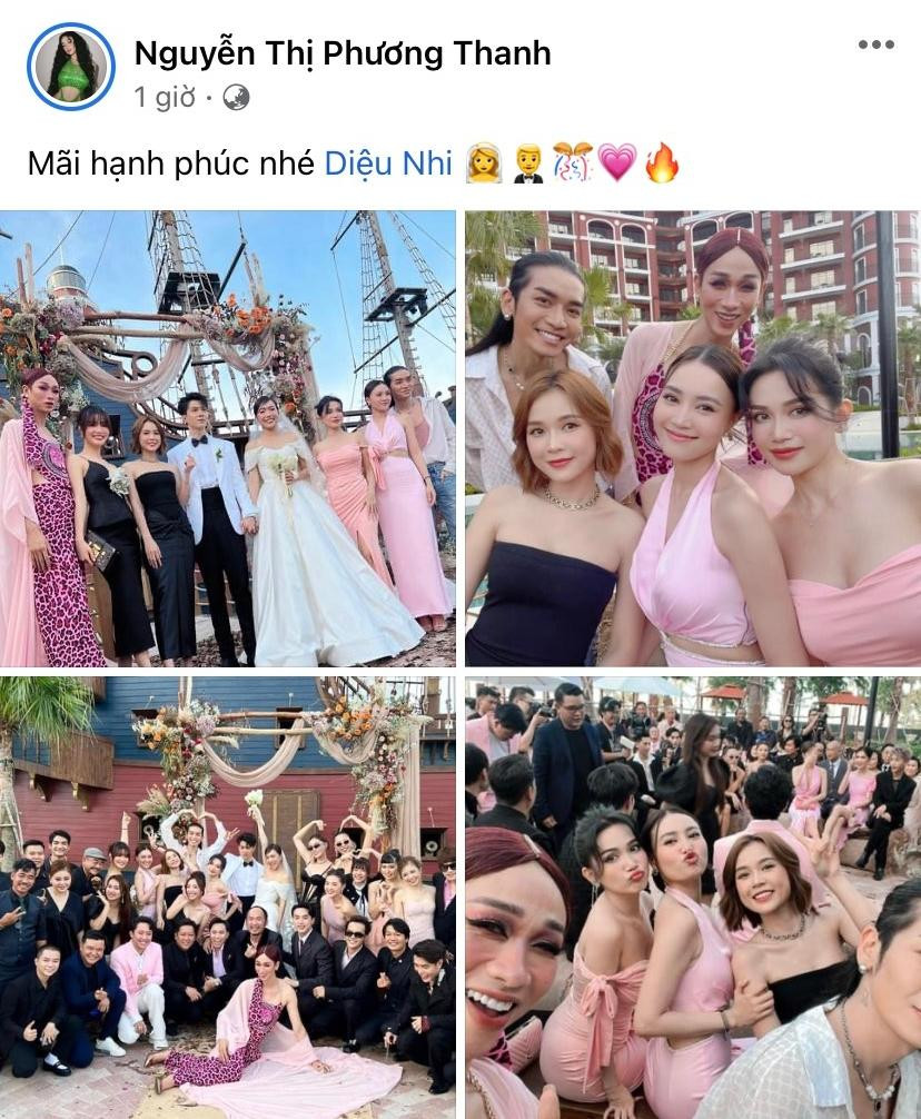 Đám cưới Diệu Nhi - Anh Tú đã chính thức diễn ra vào chiều nay ở một resort hạng sang tại Phan Thiết, Bình Thuận - quê nhà của cô dâu. Hôn lễ của cặp đôi có sự tham gia của dàn khách mời đình đám là các nghệ sĩ nổi tiếng như: Trấn Thành, vợ chồng Tiến Luật - Thu Trang, Kiều Minh Tuấn, Ninh Dương Lan Ngọc, Đức Phúc... Trong suốt thời gian diễn ra hôn lễ, Ngọc Trinh và Minh Hằng gây chú ý nhờ vẻ ngoài xinh đẹp, dáng người thon thả và "dính nhau như sam" cả khi chụp ảnh kỷ niệm lẫn ăn tiệc.