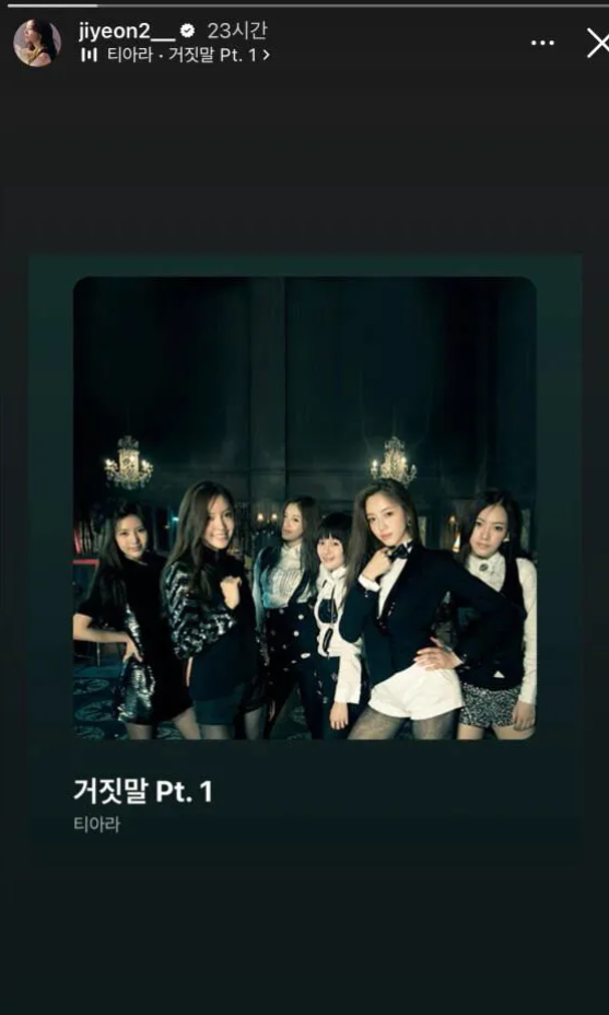 Jiyeon không trực tiếp lên tiếng phản hồi về tin đồn ly hôn. Nhưng giữa lúc dân mạng đồn thổi, cô đăng Story Instagram ca khúc Lies Pt.1 - single đầu tay của T-ARA. Tên ca khúc dịch ra là "nói dối", nên nhiều người hâm mộ đoán rằng đây chính là động thái ngầm phủ nhận tin đồn hôn nhân rạn nứt của Jiyeon. Nữ idol cũng chia sẻ một bức ảnh chụp cùng Qri, Hyomin, Eunjung để kỷ niệm 15 năm ra mắt của T-ARA.