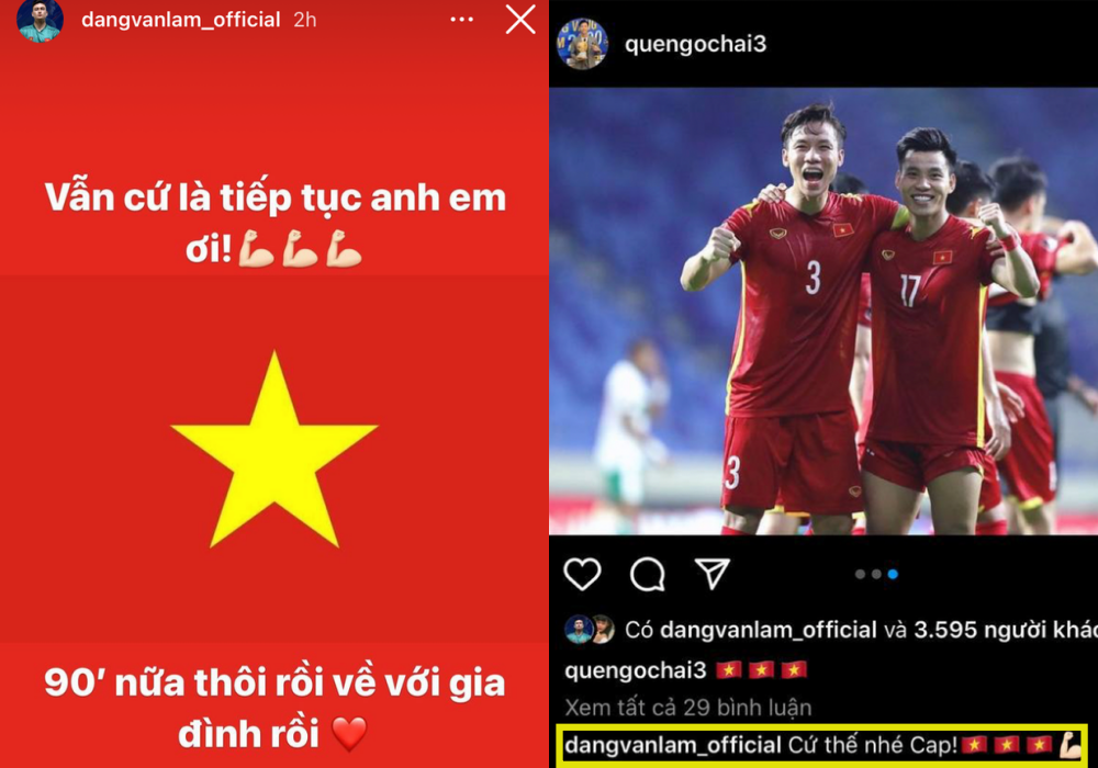 | Đặng Văn Lâm thường xuyên đăng story, bình luận động viên tinh thần các đồng đội. |