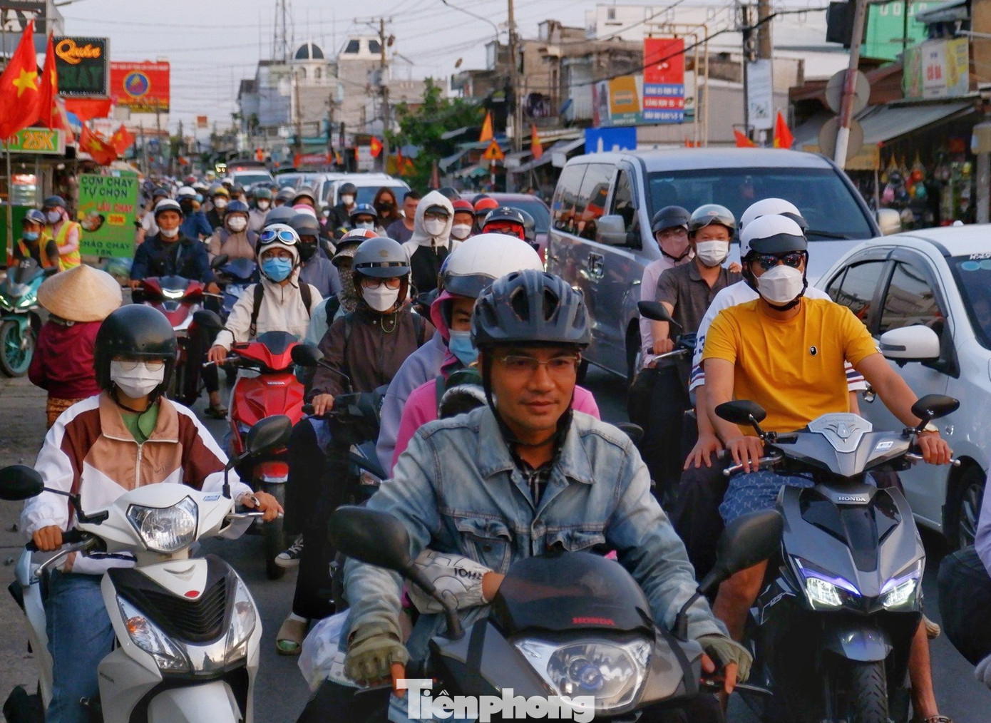 | Chiều tối 1/5, gần cuối kỳ nghỉ lễ 30/4 - 1/5 kéo dài 5 ngày, nhiều người dân ùn ùn trở về lại TPHCM nên đã xảy ra tình trạng ùn ứ tại cửa ngõ phía đông thành phố. Tại phà Cát Lái (phía huyện Nhơn Trạch, Đồng Nai), hàng nghìn phương tiện ô tô và xe máy xếp hàng dài vì ùn tắc. |
