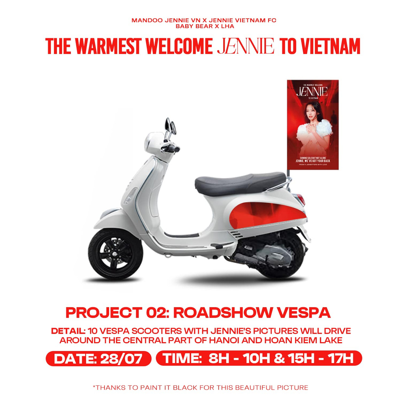 Các fanpage/ blog của Jennie tại Việt Nam cũng đã hé lộ hoạt động treo cờ in hình nữ rapper dọc trên các tuyến đường lớn, xe buýt 2 tầng và dàn roadshow bằng xe máy Vespa.