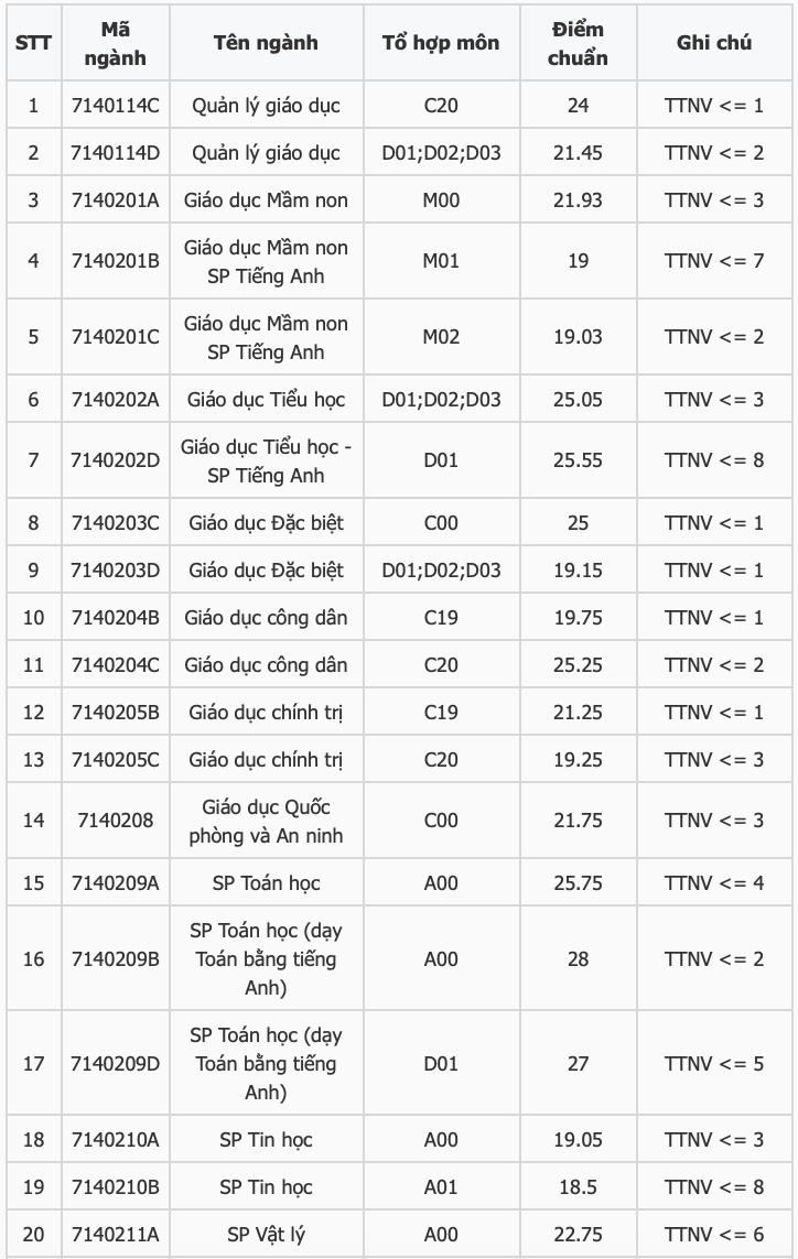 | Điểm chuẩn Đại học Sư phạm Hà Nội năm 2020. |