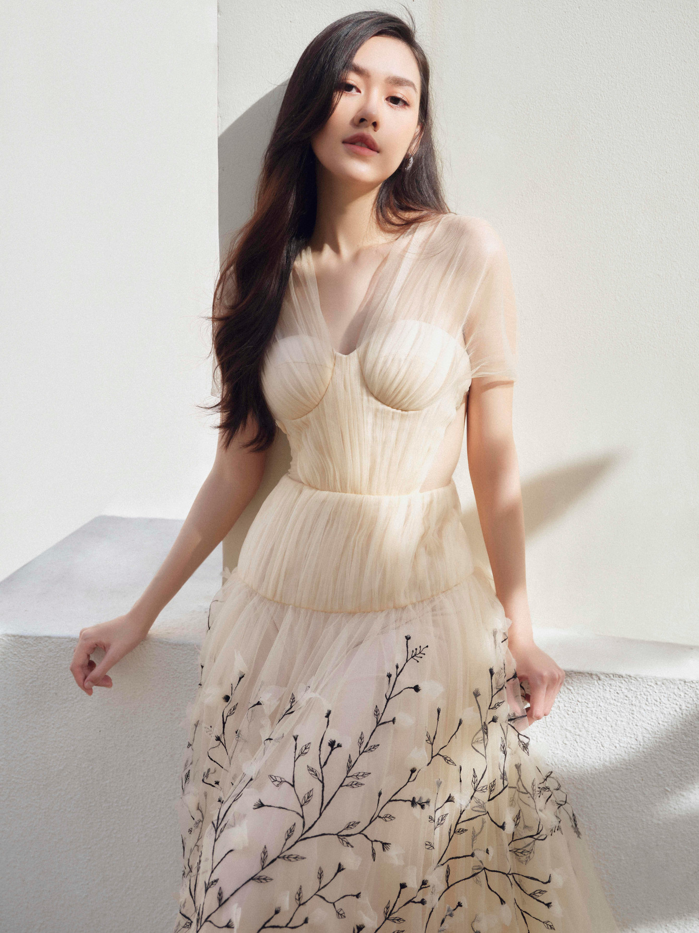 Trong bộ ảnh mới đây, Á hậu Tường San chứng minh vẫn là một trong những nhan sắc “đỉnh” của Việt Nam. Cùng với bộ sưu tập mới của NTK Lê Thanh Hòa, 'nàng Hậu' thể hiện nét nhẹ nhàng thanh lịch, vừa ngọt ngào và thu hút. Mười một mẫu váy trong loạt ảnh của Tường San tuy cùng concept trang nhã, nữ tính nhưng lại có sắc thái khác nhau. Trong khi các thiết kế hở vai, đầm hai dây làm nổi bật nét đẹp mềm mại của cơ thể thì những mẫu váy xếp ly, phối voan hay thêu thủ công mang lại cảm giác thanh nhã, quý phái của một quý cô.
