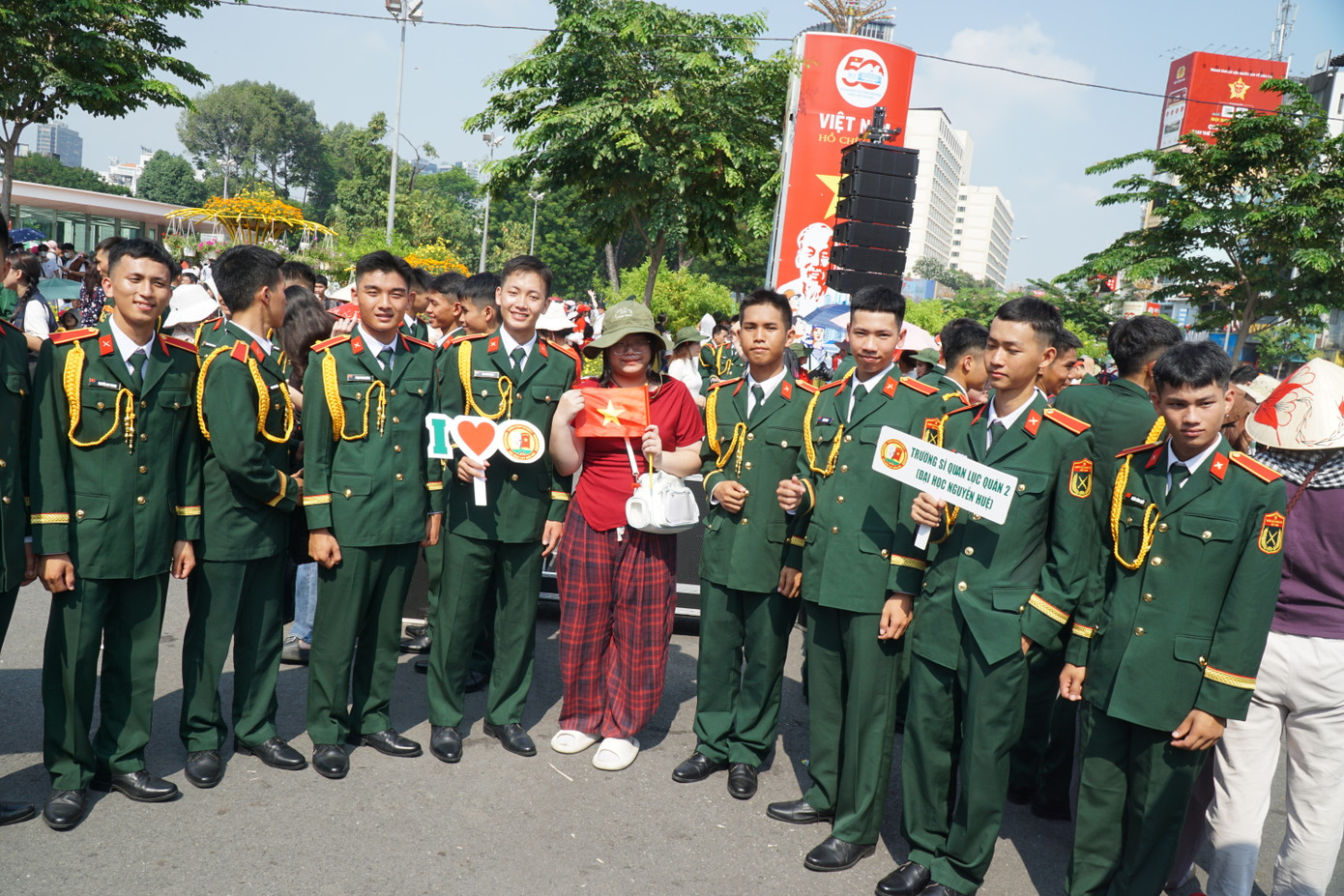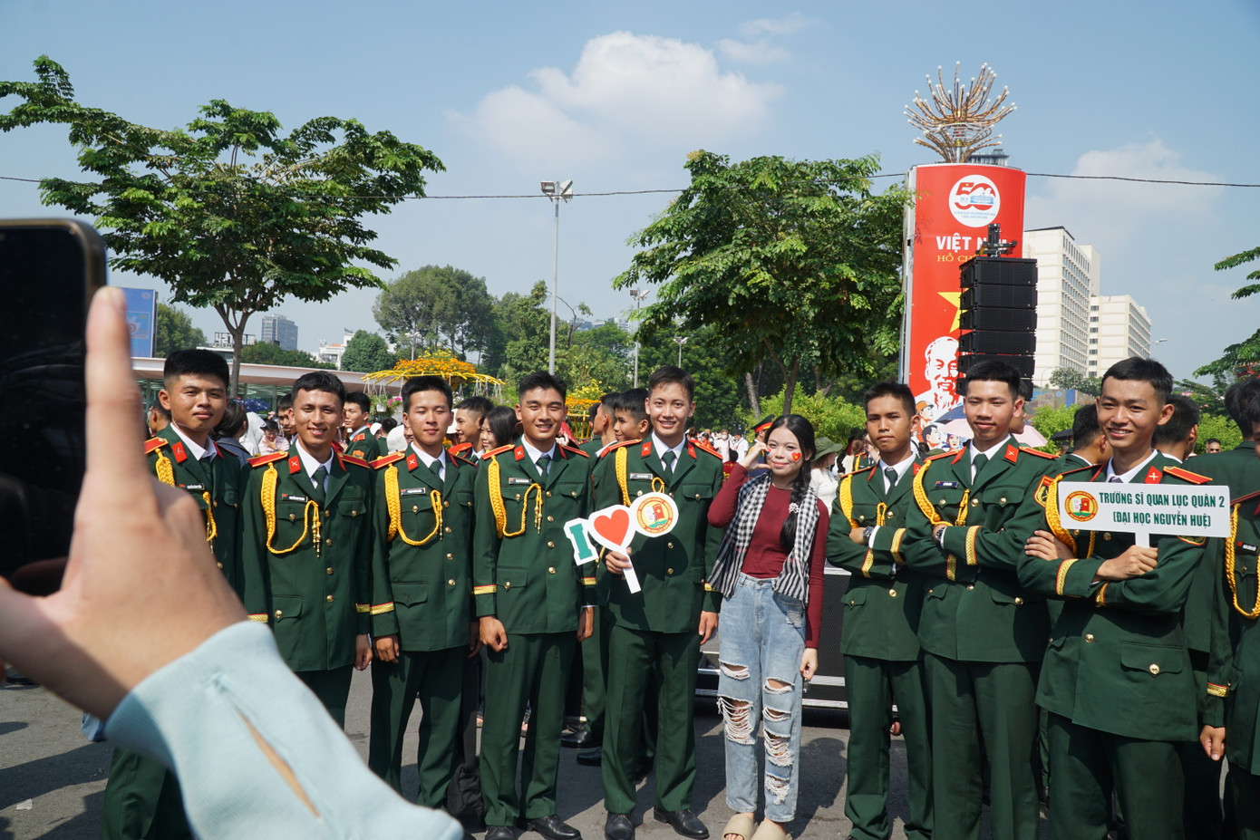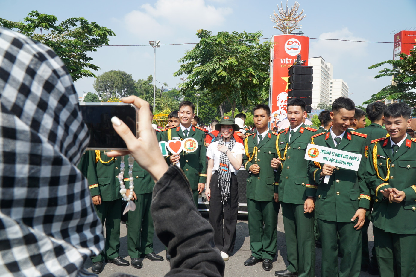 Công viên 23/9 bỗng nhiên trở thành nơi để người dân cùng các chiến sĩ ghi lại những khoảnh khắc đẹp trong không khí tưng bừng của ngày 30/4.
