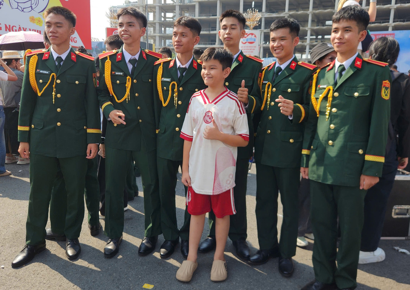 Chiến sĩ Nguyễn Thanh Duy chia sẻ đã từng chụp hình nhiều nhưng có lẽ đây là lần đầu tiên anh được chụp hình với nhiều người như thế. "Có lẽ bộ quân phục chiến sĩ đã khiến cho mọi người yêu thích, nhất là trong dịp 30/4. Đó là niềm vui của những người lính”, Duy bày tỏ.