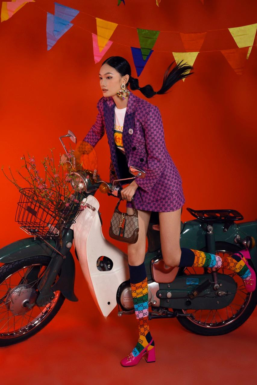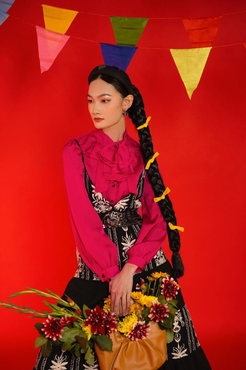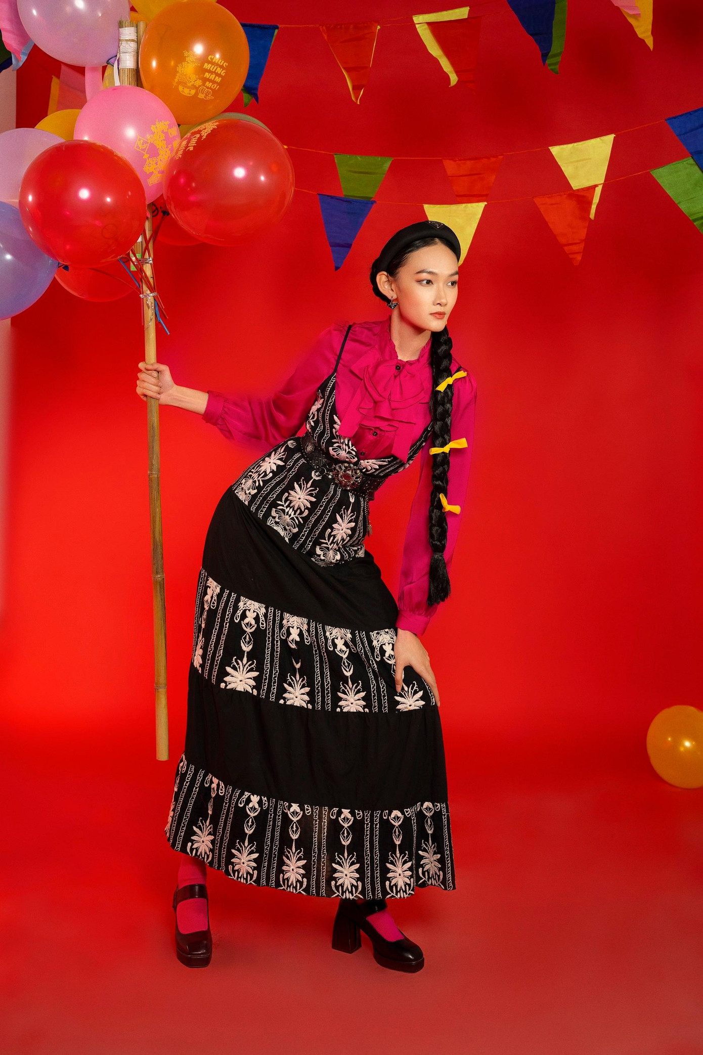 Cô gái gốc Ninh Bình cho biết, bộ hình là nét chấm phá của thời trang đương đại mang hơi hướng hiện đại. Được lấy cảm hứng từ cuộc sống mưu sinh của các cô chú bán bóng bay tết. Những quả bóng bay đầy màu sắc hay có thể bay như bóng hidro, thứ quà gắn với tuổi thơ của các 9X mỗi dịp xuân về.