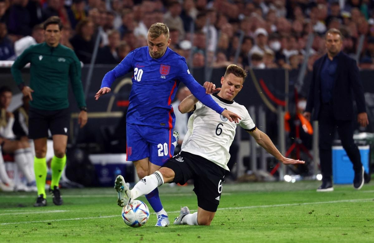 Người Anh phản ứng yếu ớt. Những gì họ có được chỉ là pha bóng ở phút 27 của Harry Kane. Anh bỏ lỡ pha phản công với cú dứt điểm ra ngoài từ cự ly gần. Và trước khi hiệp 1 kết thúc, người Đức có pha mừng hụt khi Jamal Musiala băng lên và dứt điểm về phía khung thành. Tiếc rằng Jordan Pickford đã chơi cảnh giác và xuất sắc cản phá.