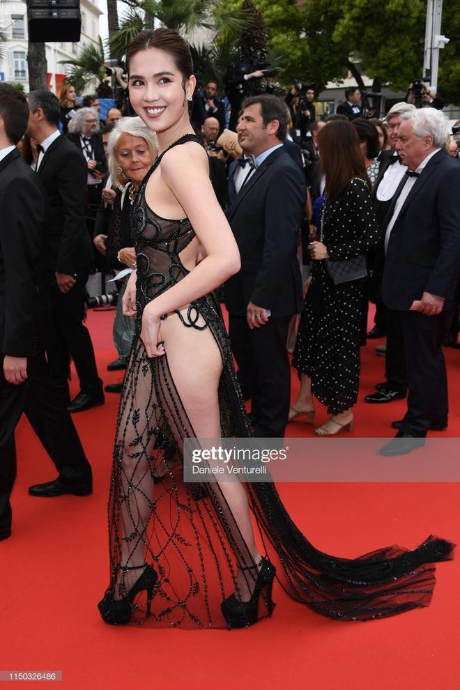 Quả thực bộ váy này nhìn góc nào cũng hở bạo, chưa kể Ngọc Trinh còn mặc nội y bé xíu nên phô gần như cả vòng 3 giữa đám đông. Thậm chí dù đã quen nhìn Ngọc Trinh mặc đồ thiếu vải, khán giả vẫn khó mà khen được trang phục mà cô chọn để đi Cannes.