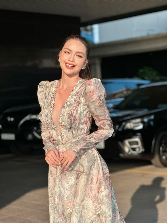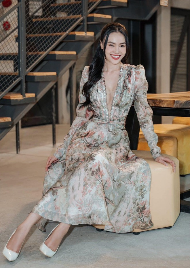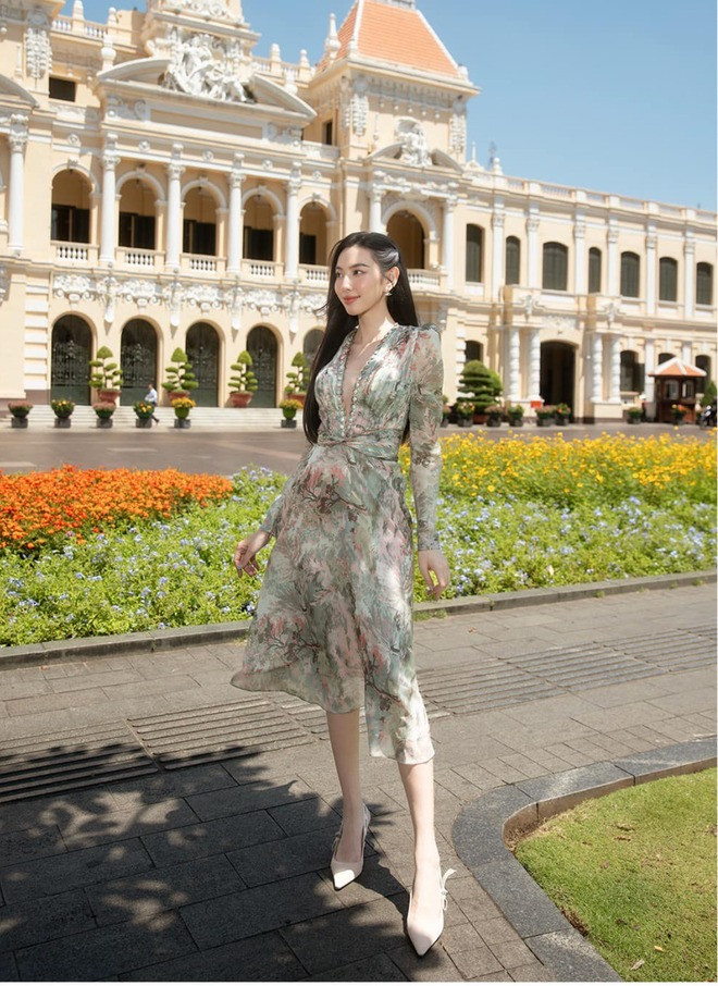 Nhờ vậy, nàng hậu nhìn kín đáo hơn, kể cả góc chụp nghiêng cũng rất an toàn trước ống kính. Còn NTK Đỗ Long thì hào hứng gọi đây là bộ váy bán chạy nhất bộ sưu tập mới của anh khi liên tục có khách hàng tìm mua.
