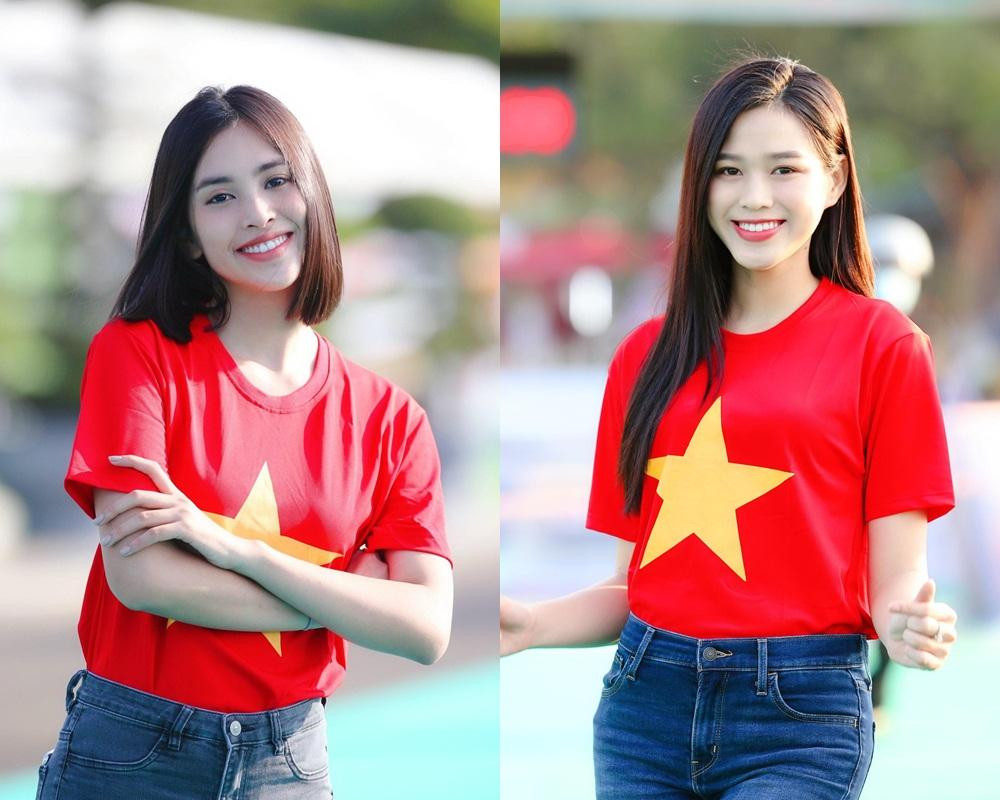 Đã quen nhìn Đỗ Thị Hà và Tiểu Vy trong những bộ đầm dạ hội cầu kỳ nên khán giả không khỏi thích thú ngắm hai Hoa hậu đọ sắc trong set đồ khỏe khoắn như thế này.