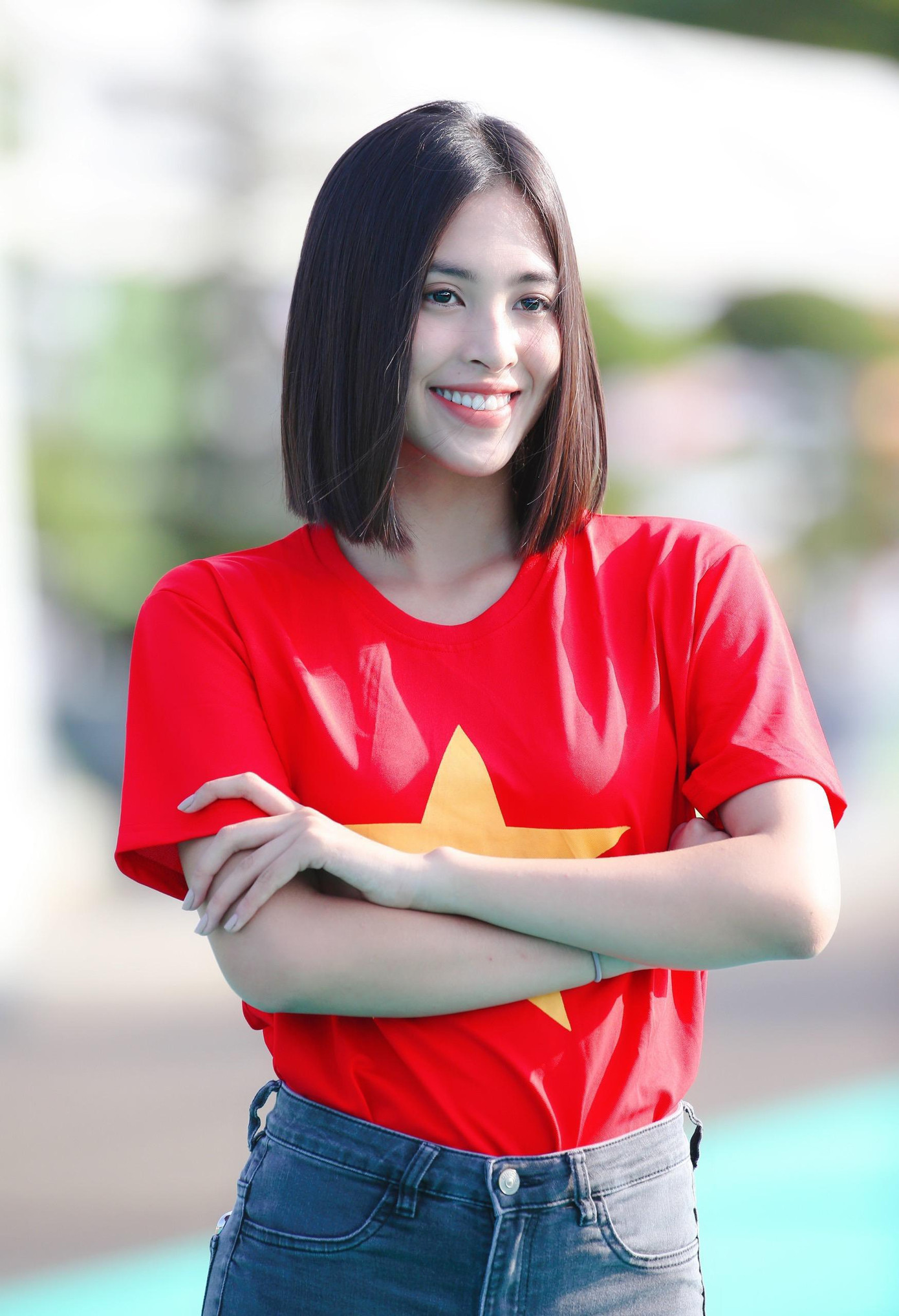 Trong lễ thượng cờ ở giải Vô địch Quốc gia Marathon và cự ly dài Báo Tiền phong tổ chức cuối tháng 3 vừa qua, Đỗ Thị Hà tiếp tục là tâm điểm chú ý dù ăn mặc rất đơn giản. Áo thun in hình cờ đỏ sao vàng kèm quần jeans giúp tân Hoa hậu nhìn đầy trẻ trung.