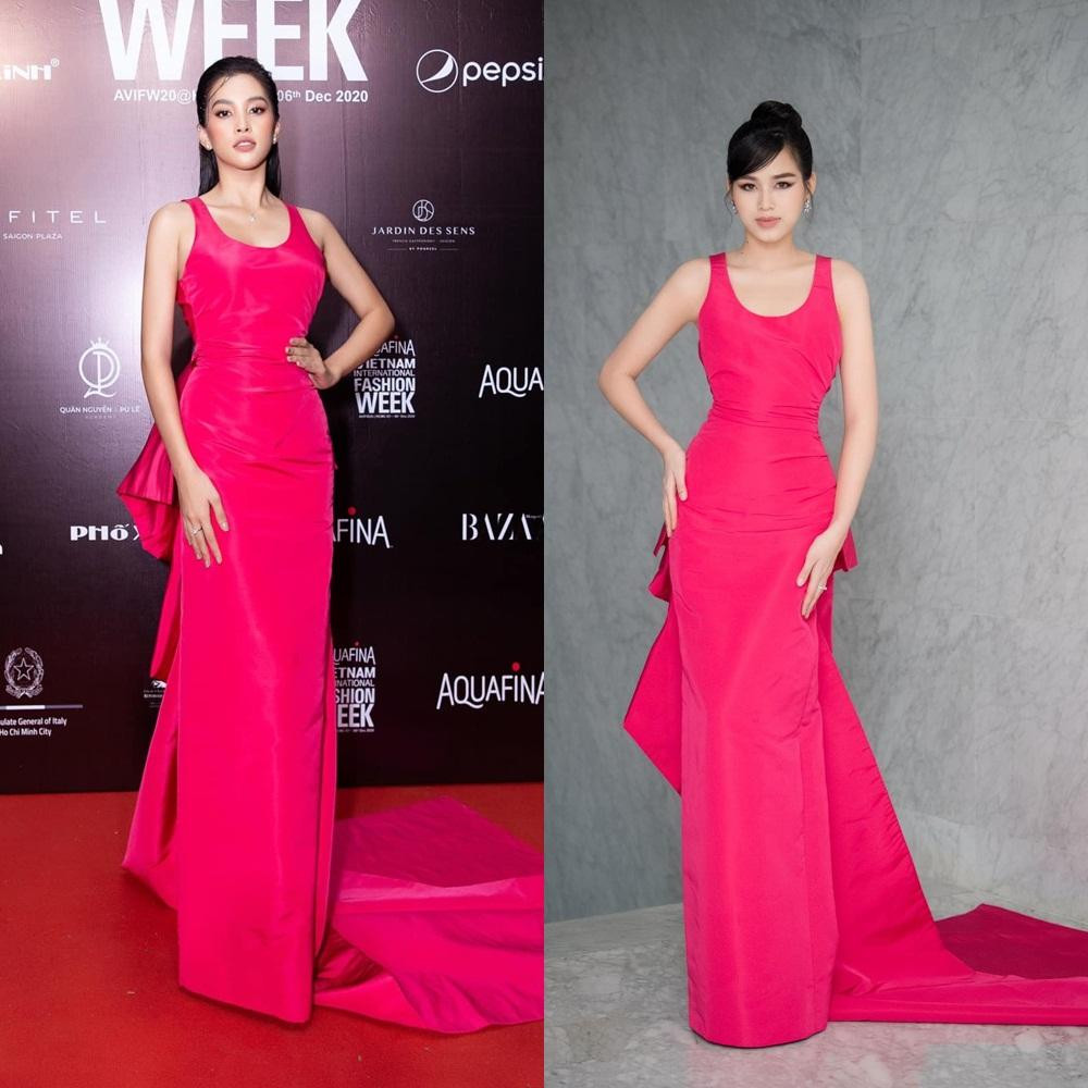 Cuối năm 2020, Hoa hậu Tiểu Vy cũng đã khoe sắc trong bộ váy này và tất nhiên, thiết kế xếp lớp cầu kỳ và màu hồng rực rỡ khiến Tiểu Vy đi tới đâu cũng thu hút mọi ảnh nhìn.