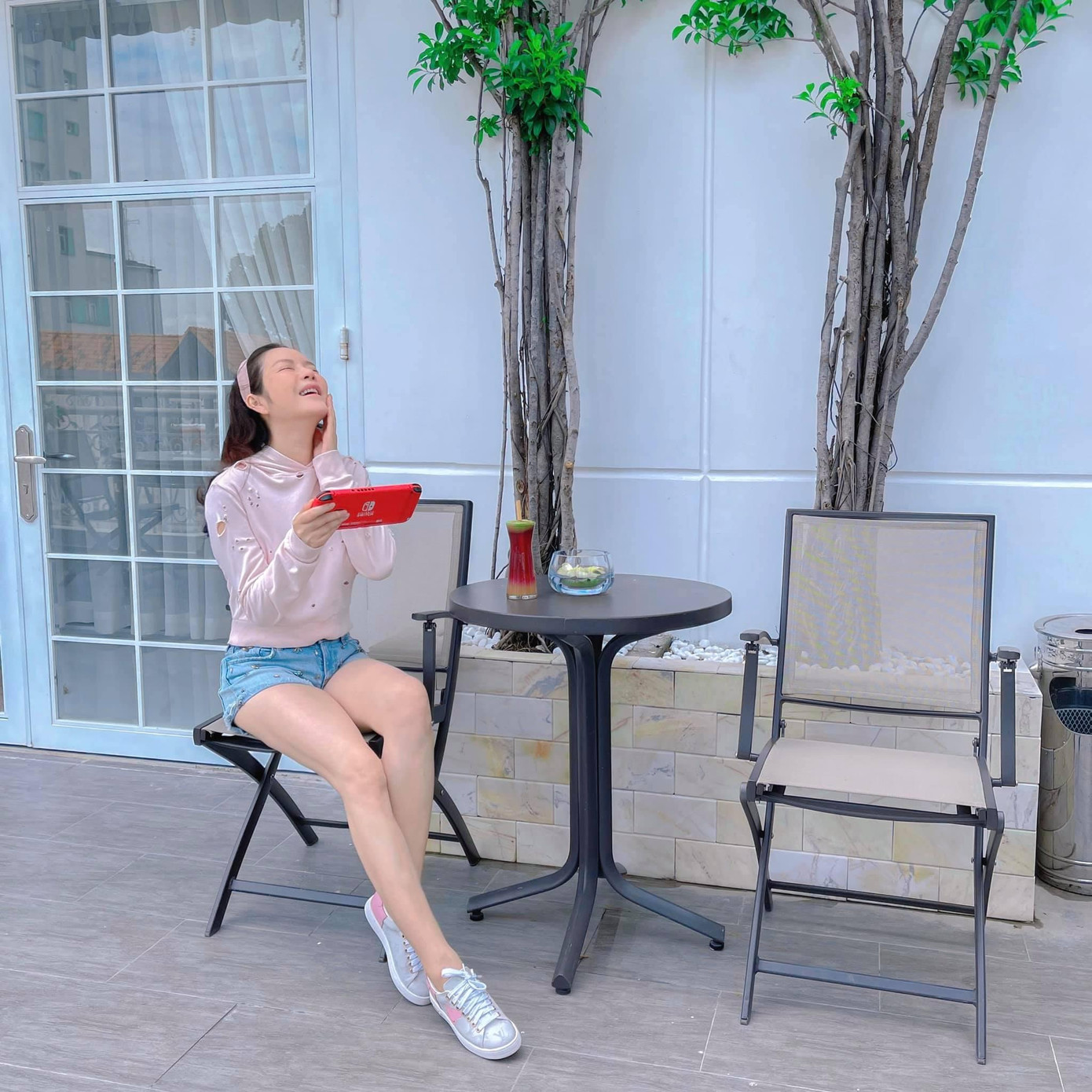 Nữ diễn viên cũng dành nhiều thời gian để thư giãn ngay dưới sân vườn của khu biệt thự.
