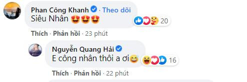 Đáng chú ý, một người bạn của cầu thủ để lại bình luận: "Siêu nhân" cùng những trái tim đỏ chót. Trước lời khen này, Quang Hải đã có màn "quay xe" khá hài hước, nam cầu thủ trả lời: "Em công nhân thôi anh ơi". Trước tâm lý khá thoải mái trước trận đấu, khán giả kì vọng Quang Hải sẽ tiếp tục có thêm "siêu phẩm" trên sân nhà.