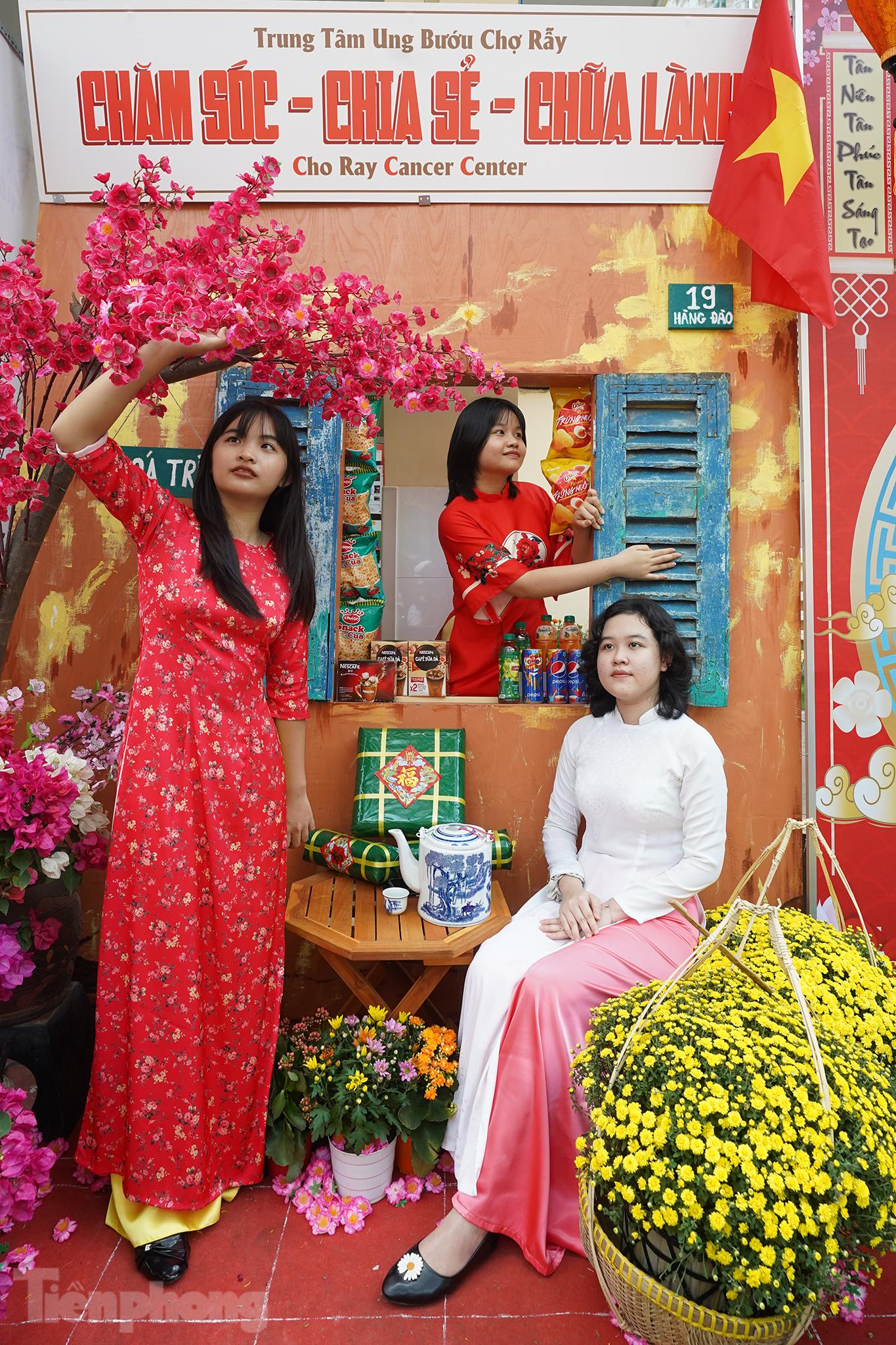 | Trong ngày đầu tiên khai mạc, đường hoa đã thu hút khá đông nhân viên y tế, thân nhân và người bệnh đến chụp ảnh lưu lại những khoảnh khắc đáng nhớ. Trong ảnh là bác sĩ CK II Huỳnh Phan Phúc Linh, Phó khoa Cơ Xương Khớp tranh thủ tạo dáng bên tà áo dài. |