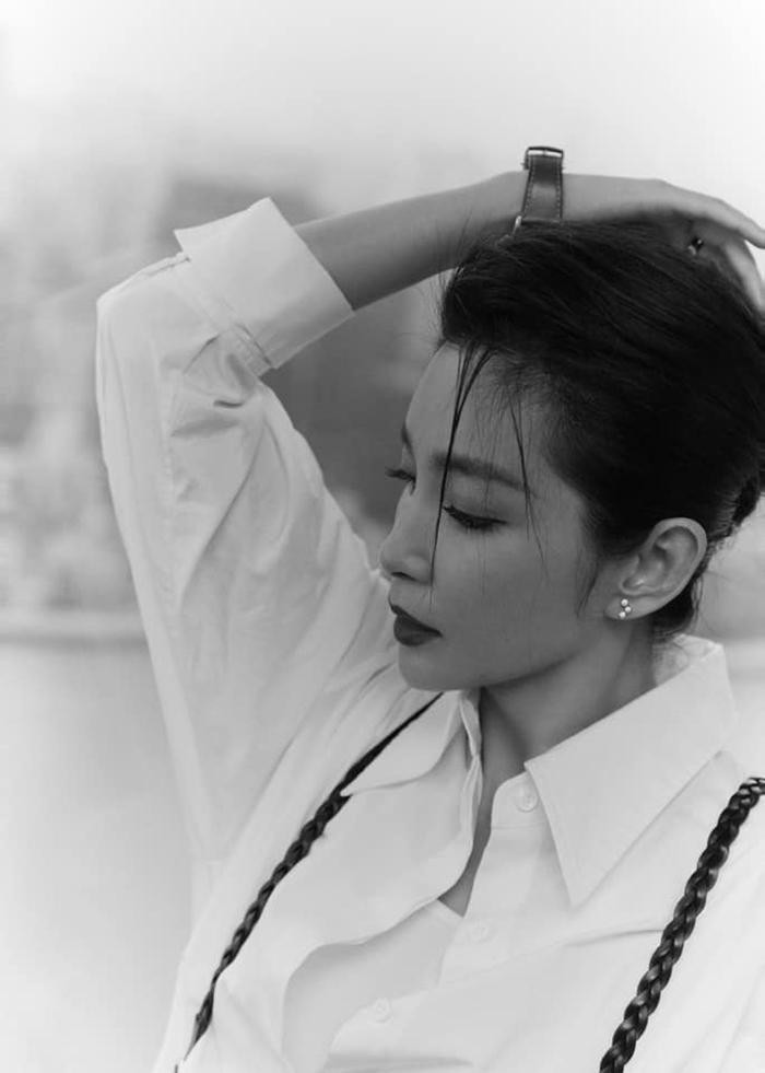 Trương Thiên Ái mặc bộ suit trắng, táo bạo nhưng không hề phản cảm.