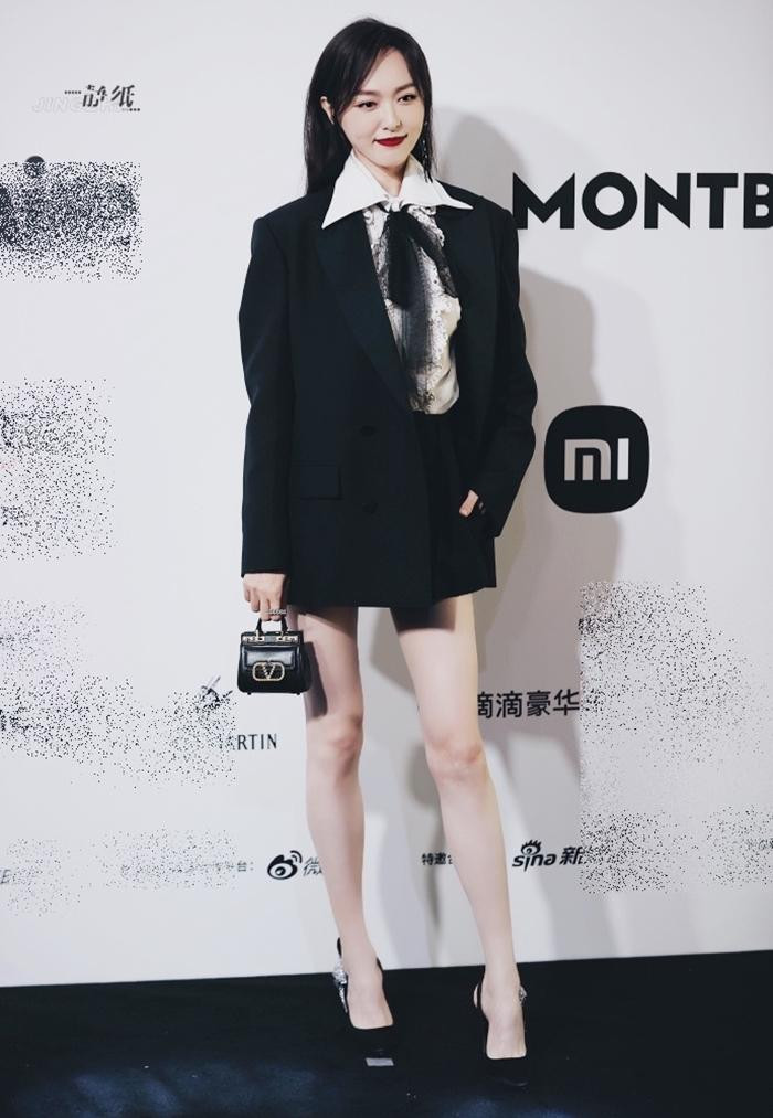 Đường Yên chọn bộ suit với quần soóc khoe đôi chân dài thẳng tắp.