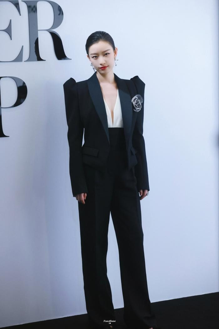 Nghê Ni cũng lựa chọn thắt lưng to bản cho set đồ của mình, cô được khen hoàn hảo từ trang phục, trang sức đến trang điểm, bức ảnh thảm đỏ nào cũng đẹp như chụp tạp chí.