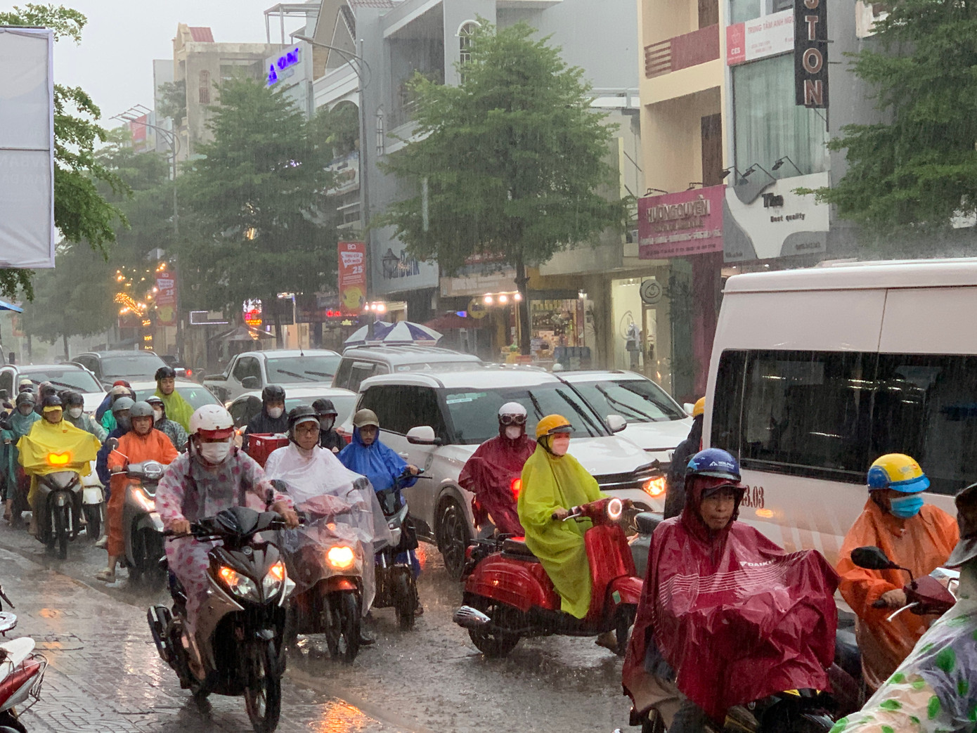 | Mưa lớn làm giao thông hỗn loạn ở nhiều tuyến đường. |