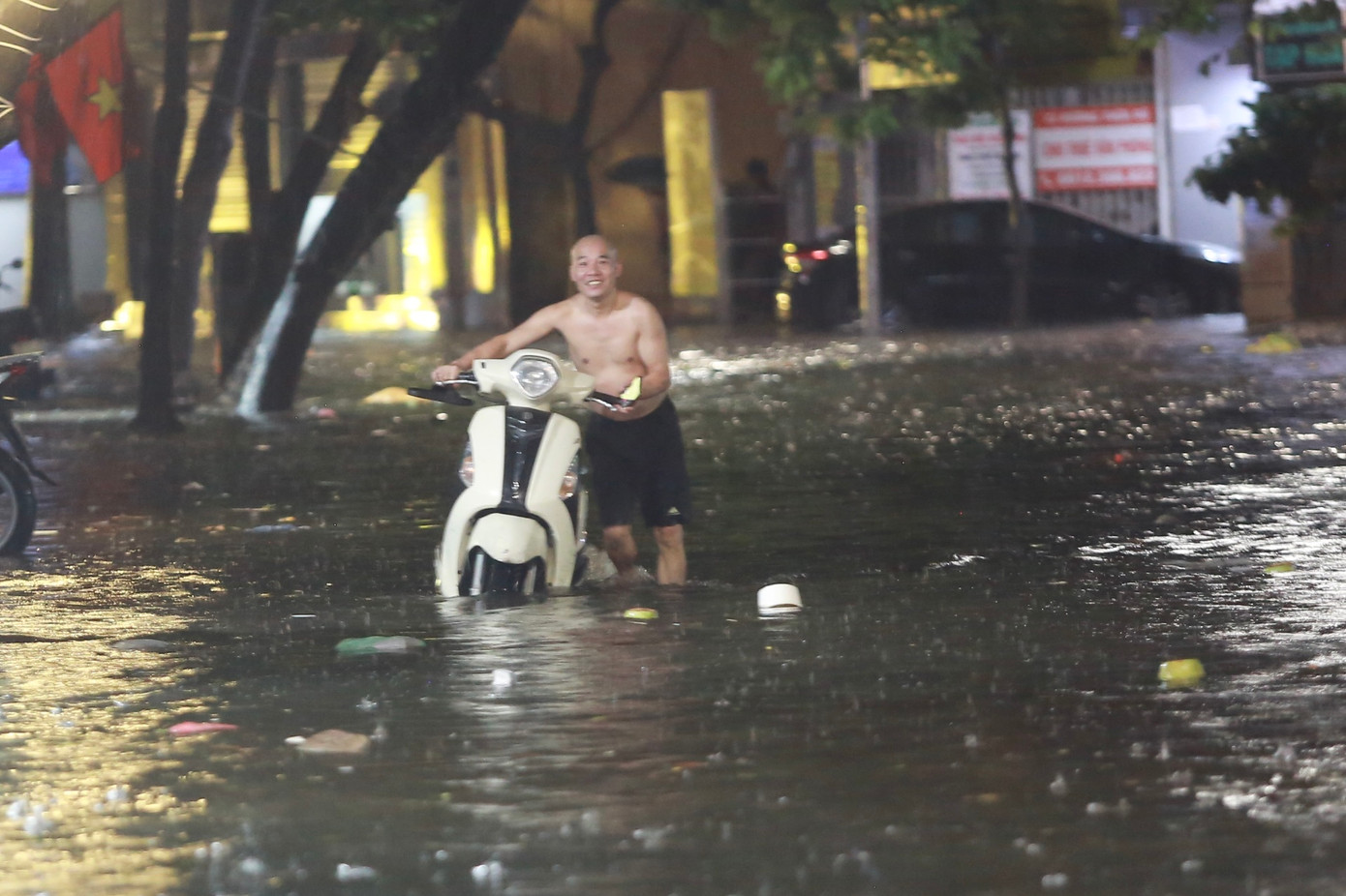 TPO - Cơn mưa trắng trời kéo dài hàng giờ đồng hồ vào đêm 23/8 khiến đường phố Thủ đô ngập tứ bề, thậm chí ngập sâu, nhiều phương tiện chết máy khi lao vào biển nước.