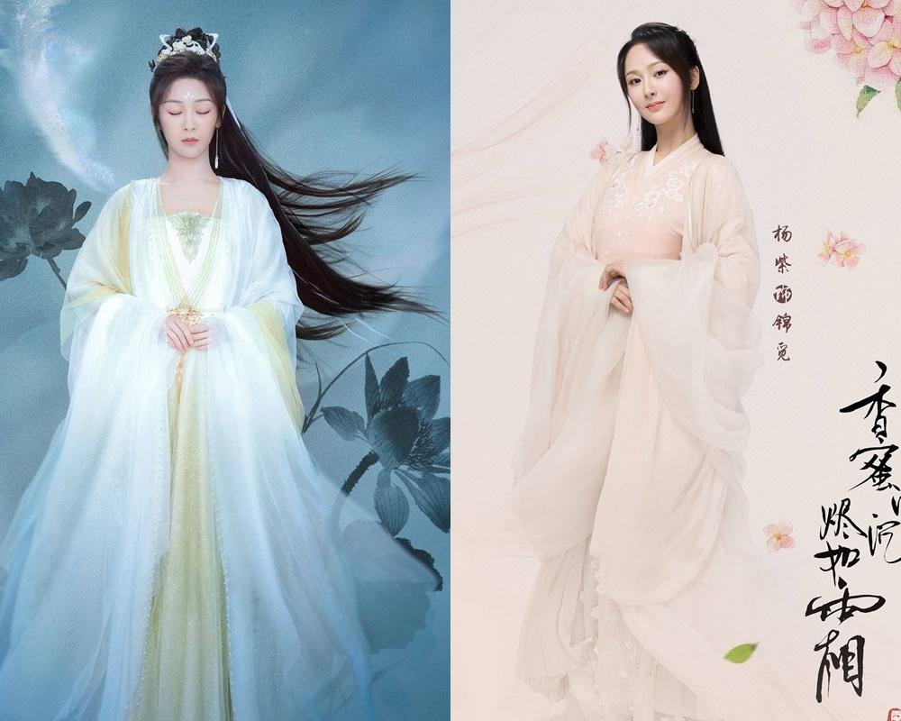 May mà phần cổ áo của hai nhân vật Nhan Đàm (ảnh trái) và Cẩm Mịch (ảnh phải) khác nhau nên khán giả còn có thứ để phân biệt hai bộ phim. Vẫn biết Hương Mật Tựa Khói Sương và Trầm Vụn Hương Phai đều là phim huyền huyễn nên trang phục phải tuân theo những tiêu chí nhất định nhưng một chút sáng tạo về kiểu tóc hay trang điểm sẽ giúp nhân vật của Dương Tử trong phim mới dễ tạo dấu ấn hơn.