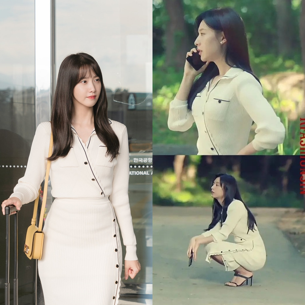 Cả hai diễn viên Yoona và Kim Ji Won đều xinh xắn trong bộ váy trắng có hàng khuy chạy chéo thân váy này. Hai cô gái vốn có vóc dáng mảnh mai, nên càng hợp với kiểu váy len ôm sát.