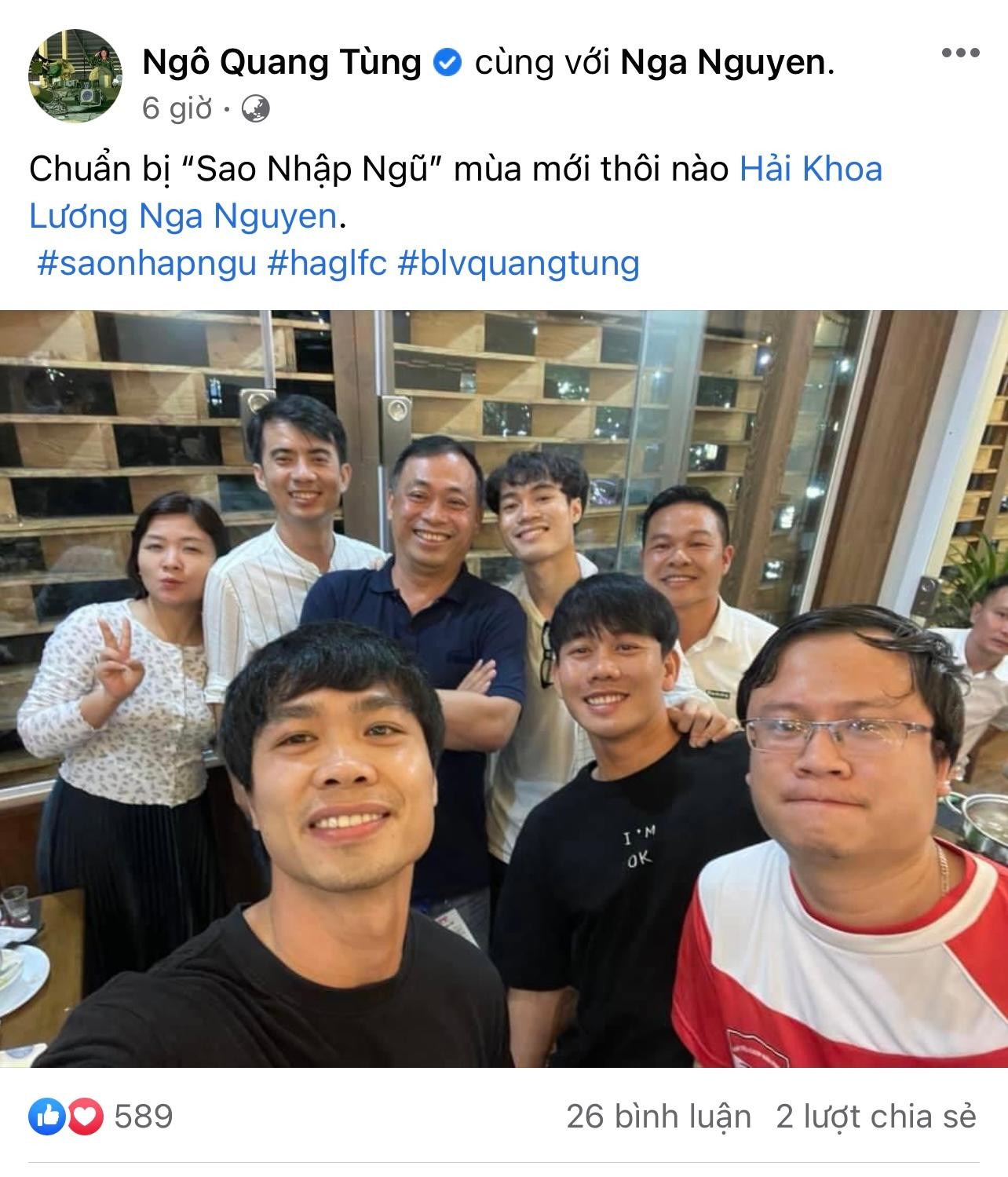 Và mới đây, giám sát sản xuất chương trình Sao Nhập Ngũ - anh Ngô Quang Tùng đã chia sẻ hình ảnh chụp cùng dàn cầu thủ đình đám bao gồm Công Phượng, Văn Toàn, Minh Vương kèm theo dòng trạng thái: "Chuẩn bị Sao Nhập Ngũ mùa mới thôi nào".