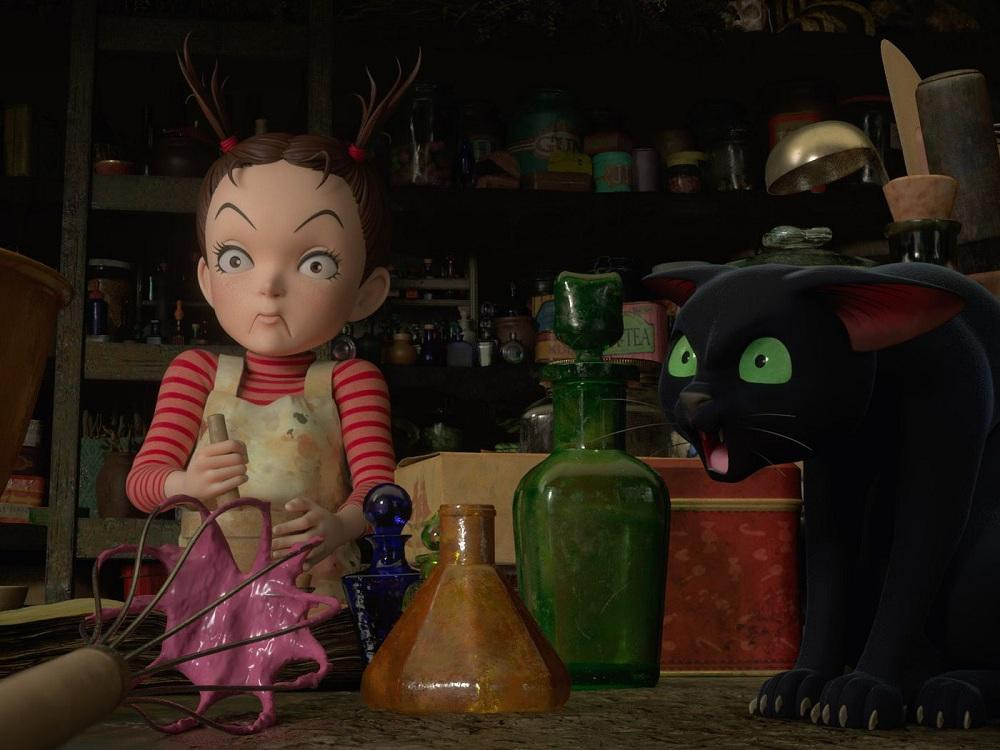 | Cô bé phù thủy Earwig và chú mèo đen Thomas. |