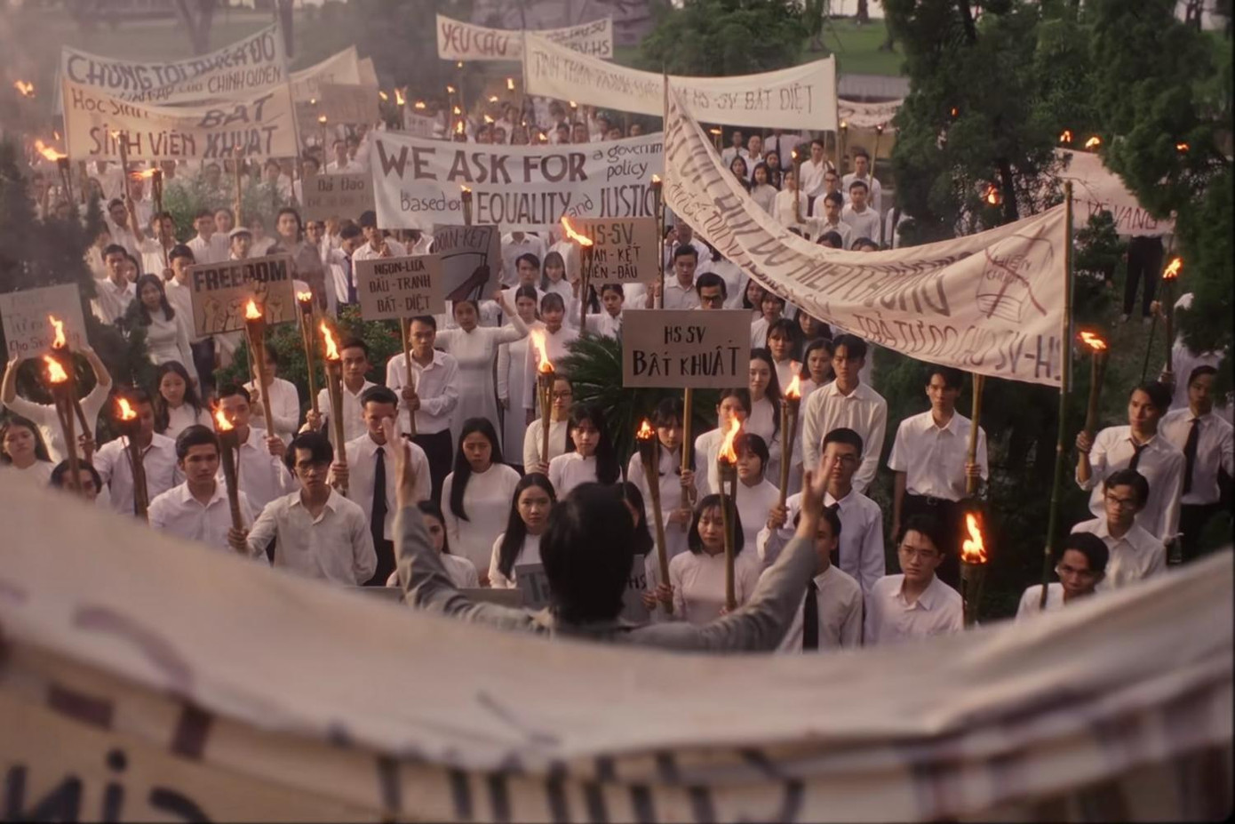Đặc biệt, không khí vừa bi thương vừa sôi sục của một thời binh biến, khi phong trào sinh viên Sài Gòn xuống đường đấu tranh cho hòa bình do nhà văn - thầy giáo Ngô Kha khởi xướng được nghiên cứu và phục dựng chân thực. Diễn xuất của Samuel An (vai Ngô Kha) ở phân đoạn này khá thuyết phục, góp phần khắc họa một nhân vật quan trọng trong cuộc đời nhạc sĩ Trịnh Công Sơn.