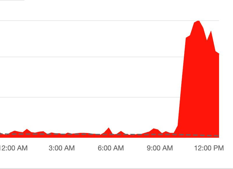 Trang Down Detector ghi nhận số lượt phản ánh sự cố Facebook, tăng cao nhất khoảng 12h trưa 16/4.