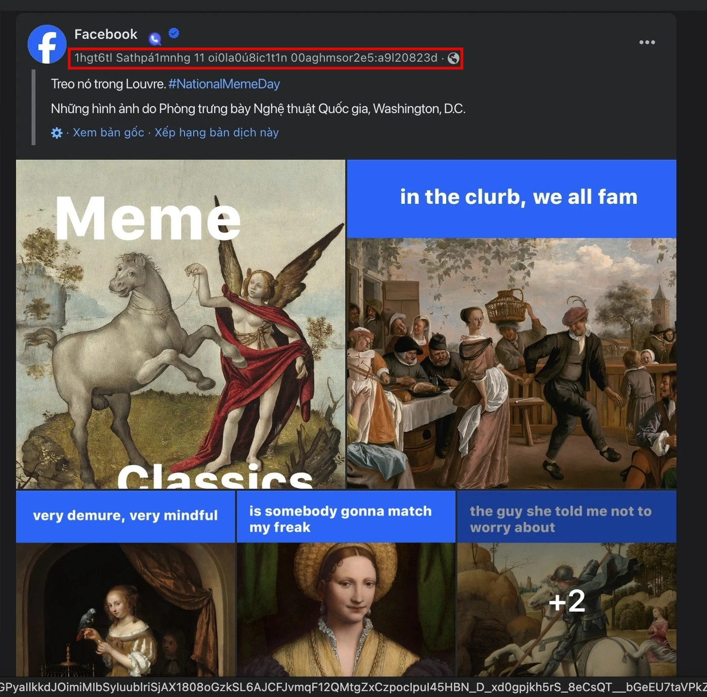 Nếu muốn xem thông tin về thời gian của bài viết, người dùng sẽ cần đưa con trỏ chuột vào vị trí của dòng ký tự này. Hiện tại, sự cố chỉ xuất hiện trên phiên bản web của Facebook. Ứng dụng Facebook trên điện thoại vẫn hiển thị thông tin thời gian bình thường.