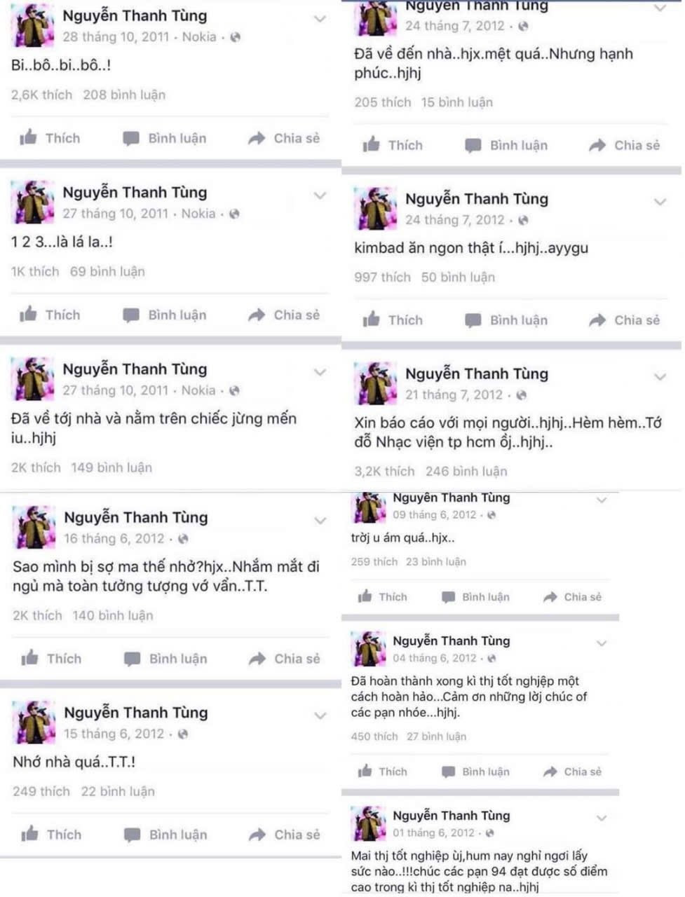 Những năm gần đây, Sơn Tùng M-TP nổi tiếng là "thợ lặn" của V-Biz vì tần suất ra nhạc lẫn cập nhật mạng xã hội thưa thớt. Nhưng khoảng chục năm trước, khi mới chập chững vào nghề thì không thế, rảnh rỗi chờ "sếp" trở lại, các fan không hẹn mà cùng "đào lại" những dòng trạng thái cũ của anh.