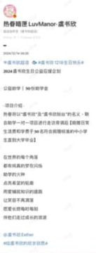 Cũng nhân dịp sinh nhật Ngu Thư Hân, trạm tỷ LuvManor đã lấy danh nghĩa fandom và Ngu Thư Hân dành tặng 50 suất học bổng cho các bạn học sinh - sinh viên (bao gồm 41 nữ, 9 nam) có hoàn cảnh khó khăn, đạt thành tích cao trong học tập nhưng chưa từng nhận được hỗ trợ nào trước đó. Dự án này sẽ hỗ trợ cho tới khi người nhận học bổng hoàn thành chương trình Đại học. Số tiền ban đầu được gửi đi để hỗ trợ là 2 triệu NDT (gần 7 tỷ đồng).