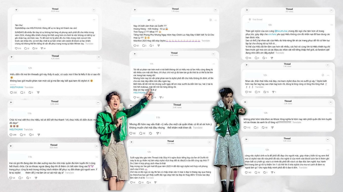 Một số khán giả thể hiện sự bức xúc khi biết rằng người phụ trách một số tạo hình của HIEUTHUHAI thời gian gần đây chỉ là trợ lý stylist. Thay vì tiếp nhận góp ý từ fan, người này bị phát hiện đã xóa/ ẩn nhiều bình luận trái chiều, sau đó khóa chức năng nhắc tên trên trang cá nhân.