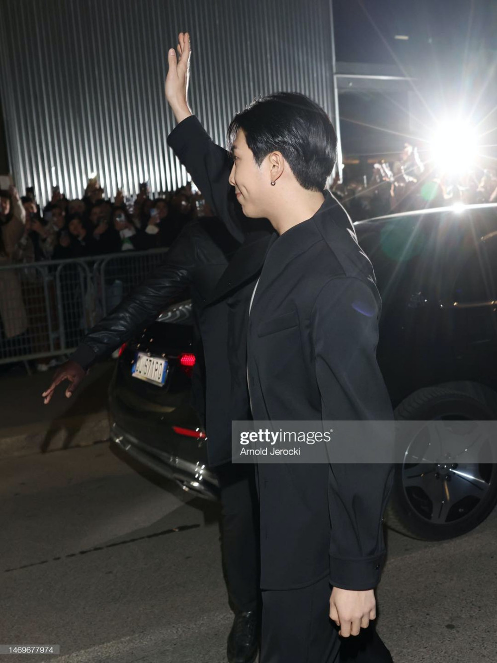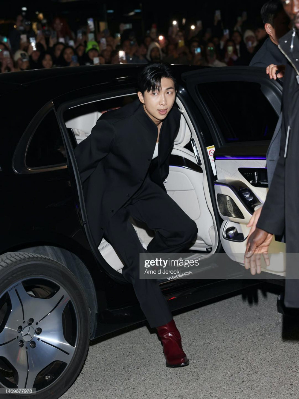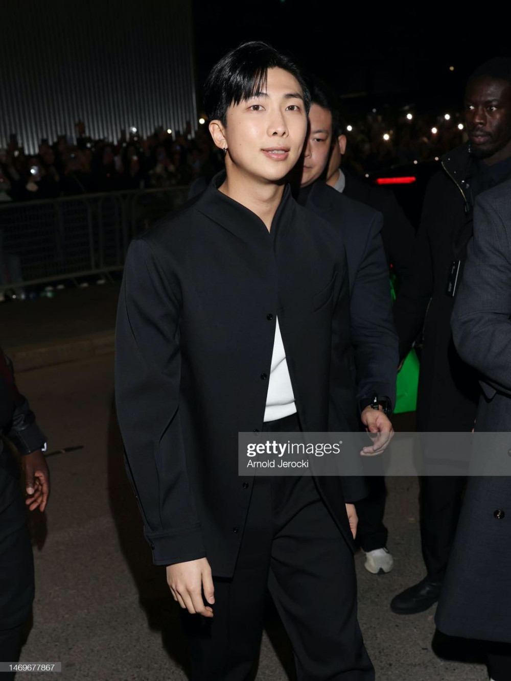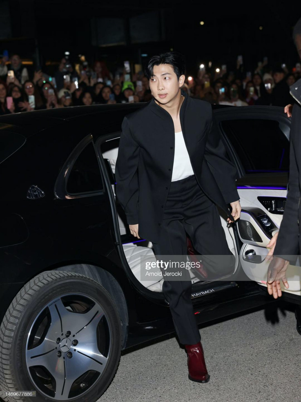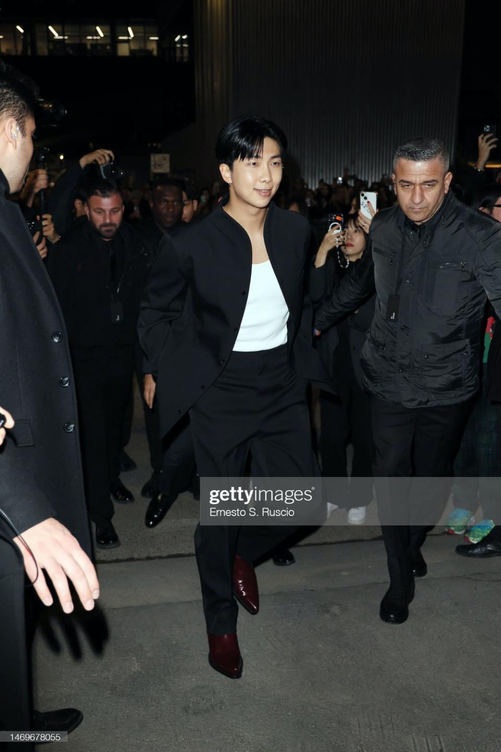 Trong loạt ảnh HD được các chuyên trang về ảnh Getty Images đăng tải trong sự kiện thời trang lần này. Ngay từ những bước chân đầu tiên bước xuống từ xe riêng, RM đã khiến người hâm mộ trầm trồ vì thần thái không phải chỉ đơn giản là giống tổng tài, mà giống như một vị chính khách.