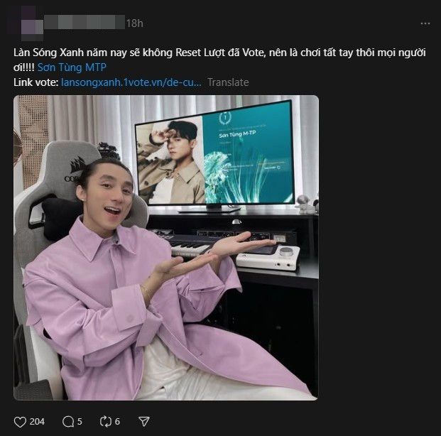 | Fan của Sơn Tùng M-TP quyết "chơi tất tay" bình chọn năm nay. Ảnh: Threads |