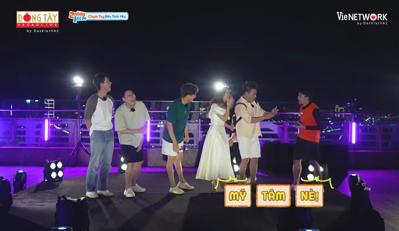 Trong tập mới nhất của 2 Ngày 1 Đêm mùa 2, trước sự xuất hiện bất ngờ của Mỹ Tâm, dàn cast của chương trình được phen vỡ òa cảm xúc. Lần đầu tiên gặp mặt, “anh cả” Trường Giang liên tục hò hét tên Mỹ Tâm như khán giả đang xem liveshow thần tượng.