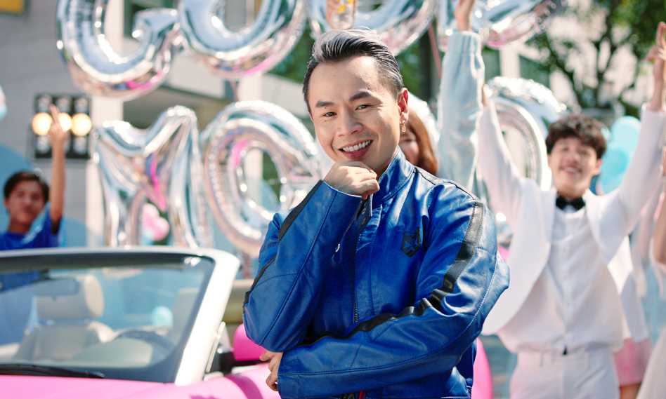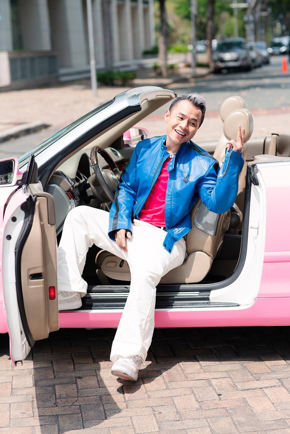 Dù lấy màu hồng làm chủ đạo, rapper vẫn toát lên vẻ nam tính nhờ kiểu dáng trang phục mạnh mẽ, thời thượng. Binz cũng kịp khiến fans đổ rạp với phong cách chất lừ cùng nụ cười hút hồn, rồi khiến người xem phải lóa mắt với những phụ kiện hàng hiệu đẳng cấp như vòng cổ, đồng hồ lấp lánh kim cương, tạo dáng cực ngầu bên cạnh chiếc xe mui trần màu hồng thời thượng.