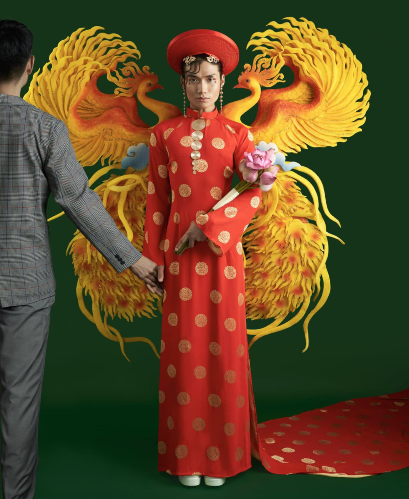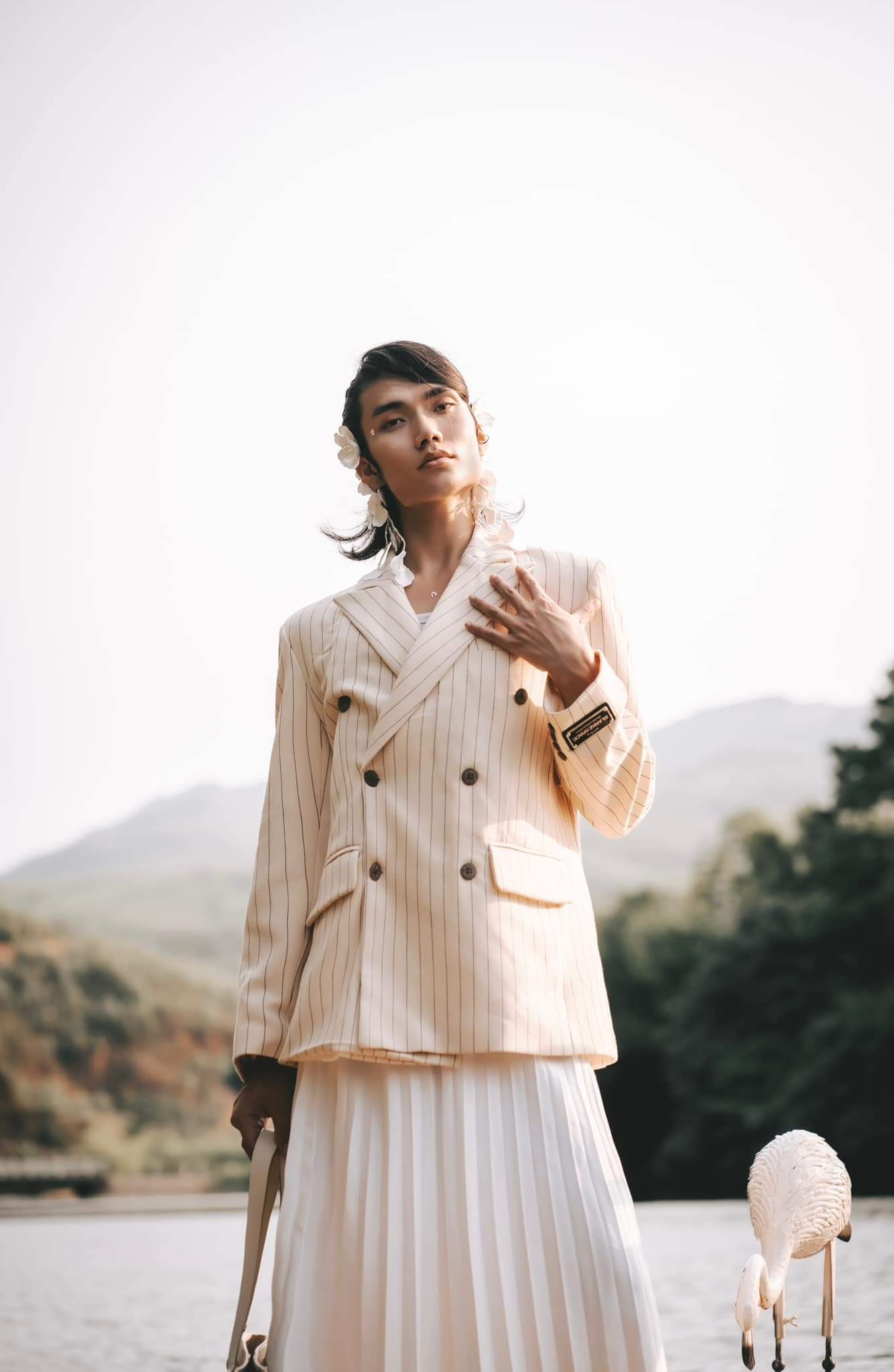 Chàng trai gen Z này cho biết: “Cõ lẽ, từ chiếc máy may của dì mà mình có được yêu thích lớn với thời trang và sáng tạo. Từ nhỏ, mình đã rất thích mượn máy may của dì để làm ra cái này cái nọ. Càng lớn lên thì mình hiểu được thời trang giống như hơi thở của mình. Do đó, mình cứ mày mò, học hỏi, thử nghiệm, thất bại rồi lại trau dồi để nghiên cứu các trang phục sao cho hợp lý nhất, chỉn chu, thời trang nhất. Và bộ ảnh lần này cũng đến từ sự nghiên cứu của mình”.