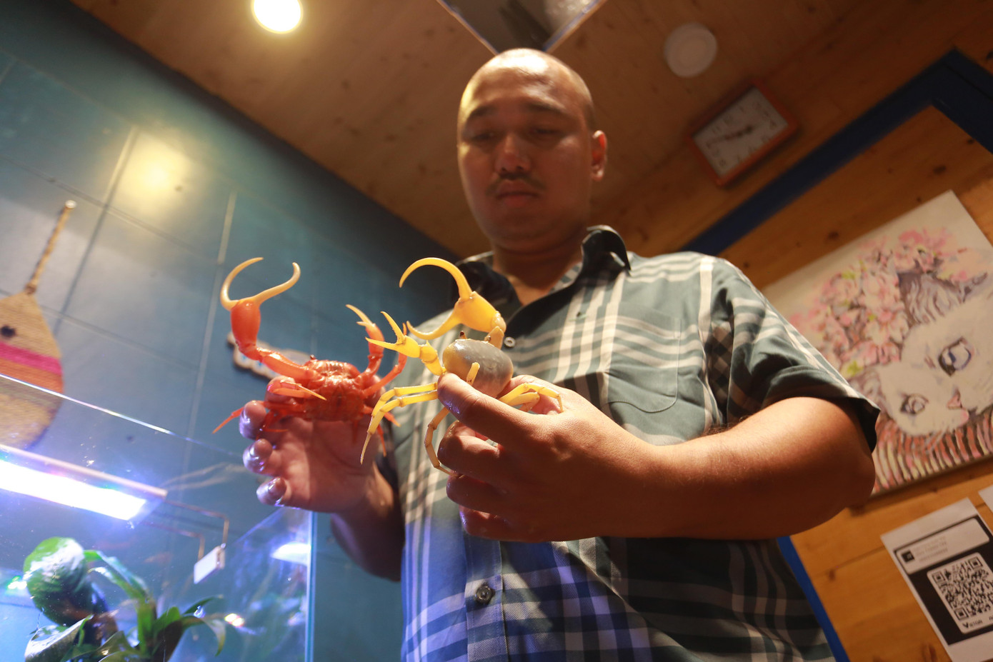 Không chỉ vậy, khi chuyển sang lĩnh vực hoàn toàn mới, anh Lộc phải tự tìm hiểu và nghiên cứu tài liệu về cua kiểng, đi trao đổi, học hỏi ngắn hạn ở nước ngoài. Túc tắc vừa học, vừa khởi nghiệp, anh sớm lấy lại được tinh thần và kiên định với thú chơi kỳ công này từ năm 2016 đến nay.