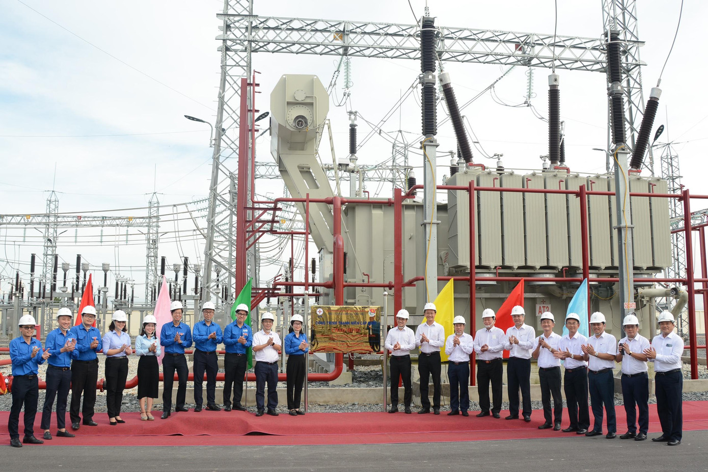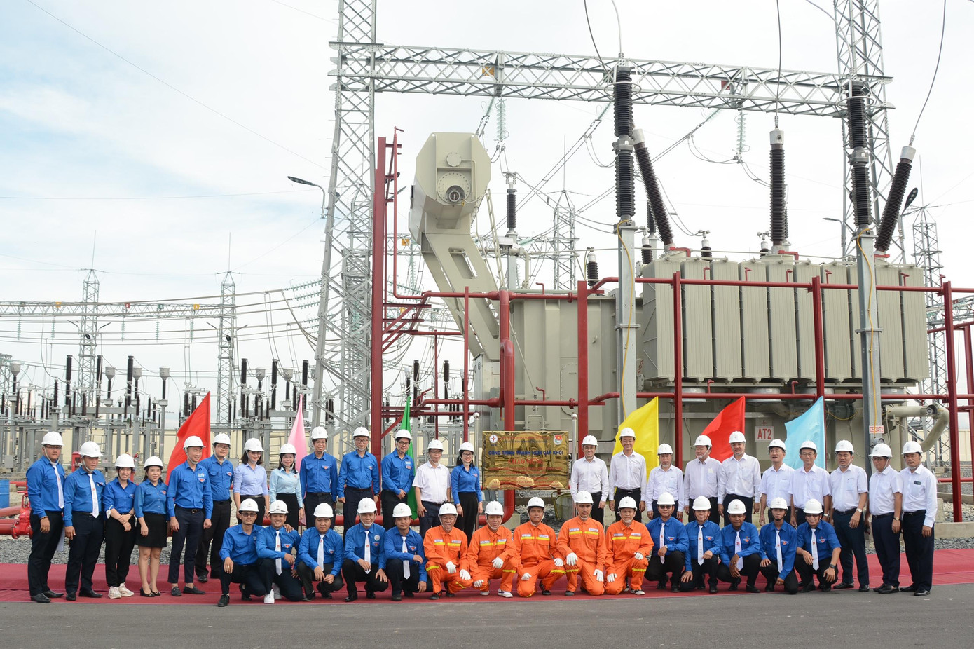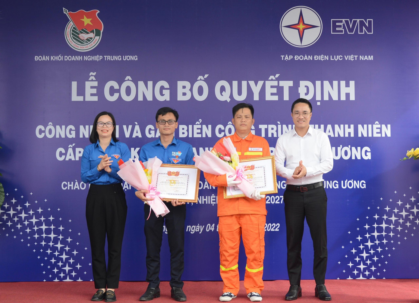 Tại buổi lễ, chị Hoàng Thị Minh Thu, Bí thư Đoàn Khối Doanh nghiệp T.Ư trao quyết định công nhận và gắn biển cho công trình “Tham gia giám sát, nghiệm thu lắp đặt và viết quy trình vận hành máy biến áp thứ hai 220kV - 250MVA tại Trạm 220kV Bến Lức”.