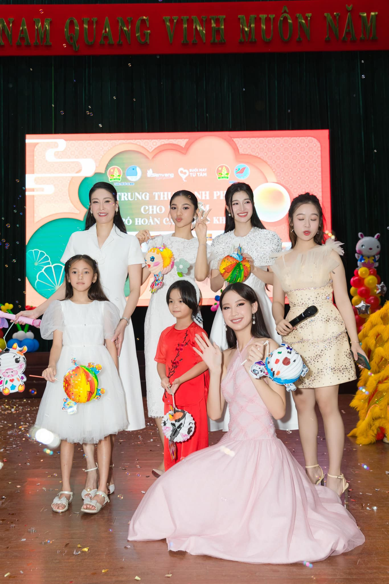 Mới đây, dàn hậu đông đảo của nhà Sen Vàng đã cùng nhau đi tặng quà cho các em nhỏ nhân dịp Trung Thu. Các người đẹp chọn trang phục nhã nhặn, màu sắc ngọt ngào và khi chụp ảnh chung, Bảo Ngọc được ưu ái đứng ở vị trí trung tâm. Tuy vậy, cô đã khuỵu hẳn chân xuống để có chiều cao tương đồng với mọi người xung quanh.