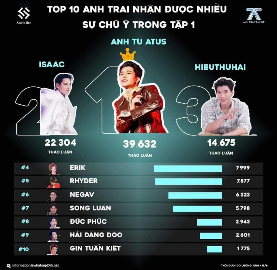 Hùng Huỳnh giữ vị trí thứ 3 ở BXH các Anh Trai nhận được nhiều sự chú ý nhất trong tập 2. Chỉ trong 4 ngày, mỹ nam hút hơn 24 nghìn lượt thảo luận. Anh chàng vượt qua đàn anh ISAAC - sao nam giữ vị trí thứ 2 ở tập 1.