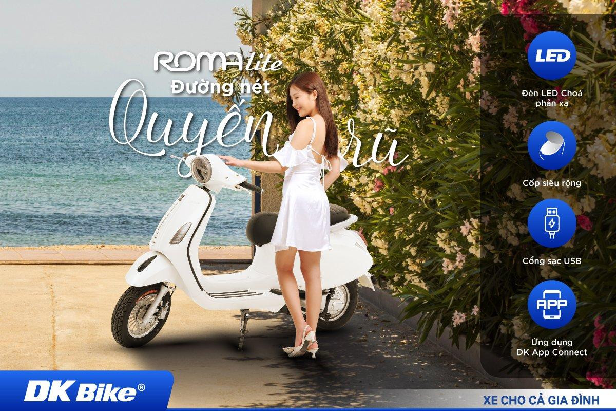 Đáng chú ý đó là mẫu xe máy điện DK Roma Lite thuộc dòng Roma hiện đang được nhiều người tìm mua tại DK Bike. Cụ thể, DK Roma Lite là mẫu mới nhất đã được DKBike giới thiệu trong Hội Nghị Khách Hàng của hãng tại Đà Nẵng ngày 11/5/2022 vừa qua. Tổng thể xe nhìn khá hiện đại và có kích thước gần tương đương với các phiên bản trước.
