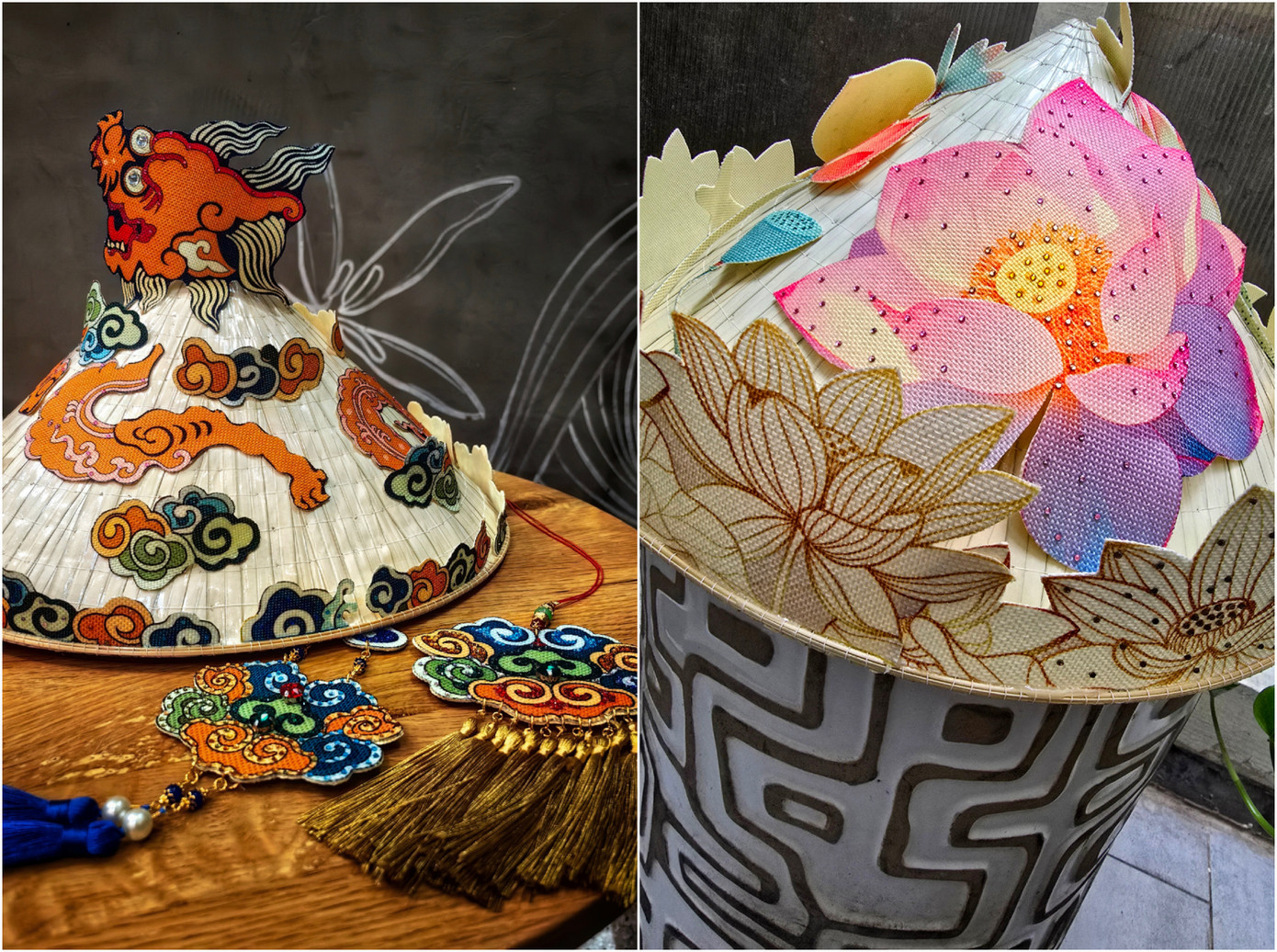 "Bố cục và số lượng các chi tiết trên nón được cân nhắc sao cho giữ được trọn vẹn ý nghĩa của họa tiết nhưng vẫn không làm mất đi hình dáng của chiếc nón lá", Huy Tiêu chia sẻ.