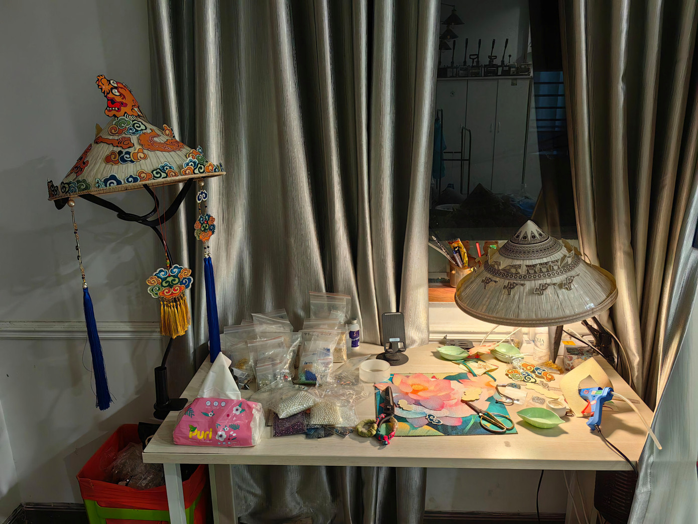 Chiếc mũ đầu tay, Cửu Long Thông Thiên, là cả một hành trình chắt chiu. "Vì nguyên liệu Việt Nam có giá thành cao, mình phải thay thế bằng đất sét tự nặn hoặc đặt một số thứ từ nước ngoài. Dù là bản mô phỏng, nhưng mình cố gắng làm những chi tiết giống thực tế nhất có thể", Huy Tiêu kể. Sản phẩm ra đời không chỉ giúp chàng trai Gen Z khẳng định khả năng mà còn nhận được sự yêu thích từ cộng đồng mạng.