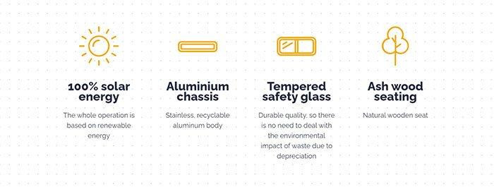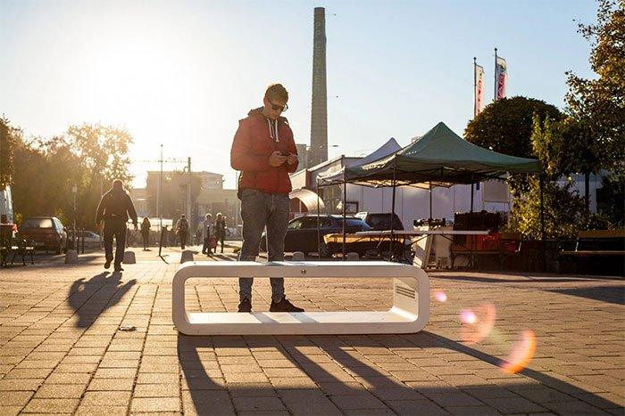 Đây là một chiếc ghế thông minh thế hệ mới, được thiết kế với đa tính năng và thân thiện với môi trường vì nó hoạt động bằng năng lượng mặt trời, có thể cung cấp WiFi, cổng sạc các loại…