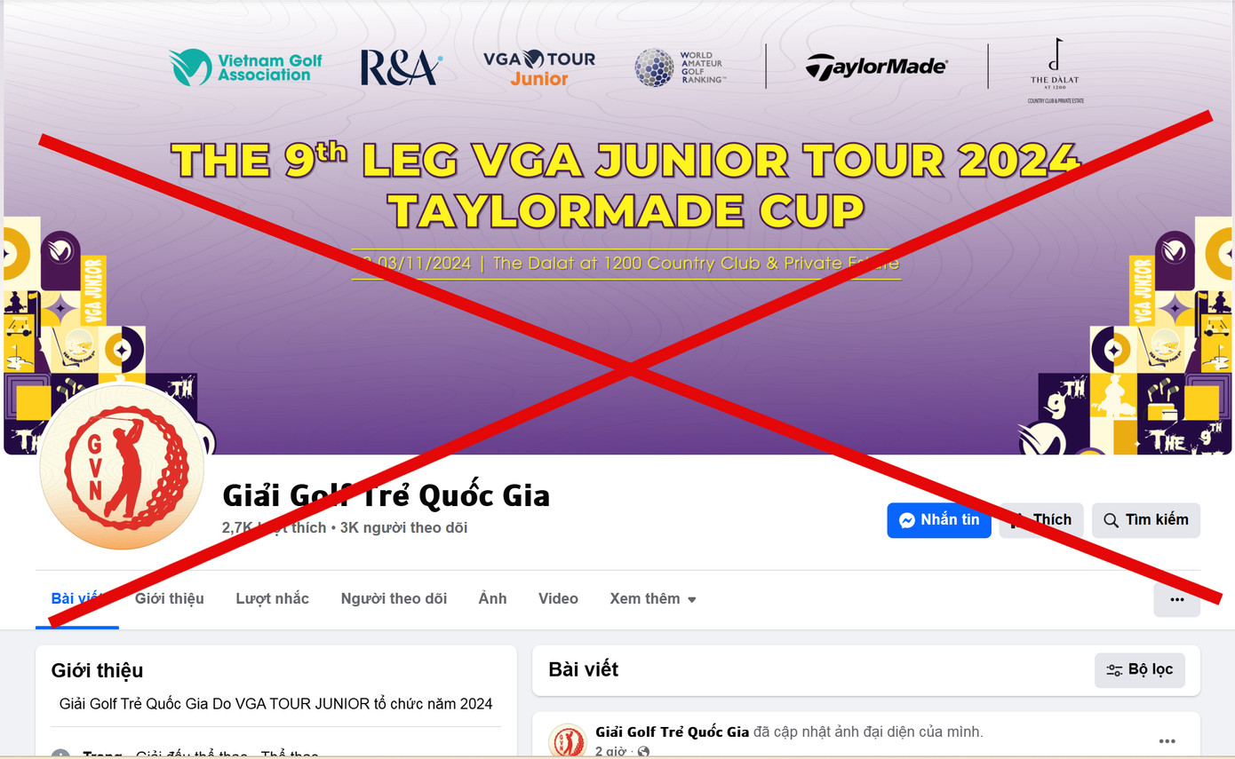 Ngày 24/10, page này đăng liên tục 3 bài với cùng một nội dung. Trong đó, đối tượng lừa đảo đặt tiêu đề "Khởi động giải Golf Trẻ Quốc Gia - Tiền Phong Championship 2024", mô tả về một giải golf dành cho lứa tuổi từ 7 đến 18 được tổ chức tại 98 sân golf trên 63 tỉnh thành cả nước.