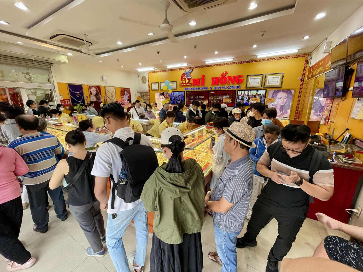 Không vào được Công ty SJC để mua vàng, chị Nguyễn Thị Hà (45 tuổi, ngụ quận Bình Tân) chạy vội đến tiệm vàng Mi Hồng (quận Bình Thạnh), chấp nhận đội nắng xếp hàng mua vàng. Tuy nhiên, khi sắp đến lượt mua vàng, chị Hà mới hay, vàng từ mức 118 triệu đồng/lượng đã vọt lên 120 triệu đồng/lượng; đến khoảng 13 giờ, giá vàng miếng SJC tại đây tiếp tục điều chỉnh tăng lên 121 triệu đồng/lượng. “Choáng với giá vàng, chỉ một chút chậm chân thôi mà mất thêm 2 - 3 triệu đồng cho mỗi lượng vàng mua vào” - chị Hà tiếc hùi hụi.