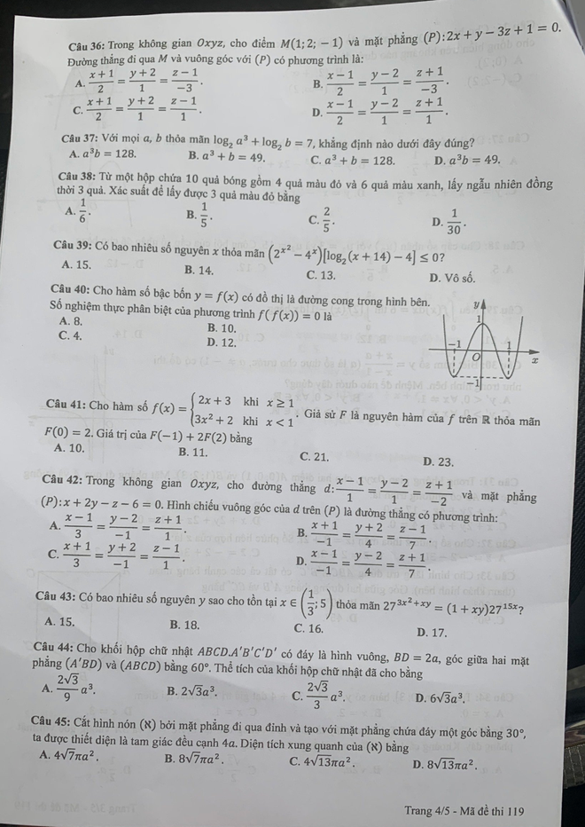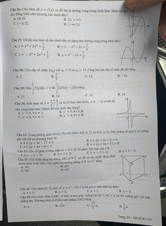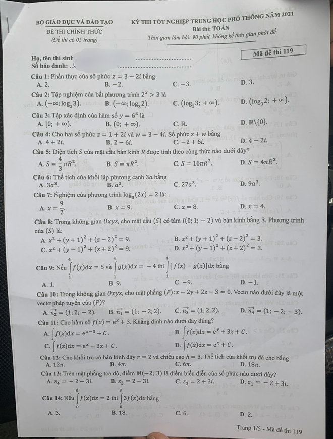 | Mã đề 119 thi môn Toán |